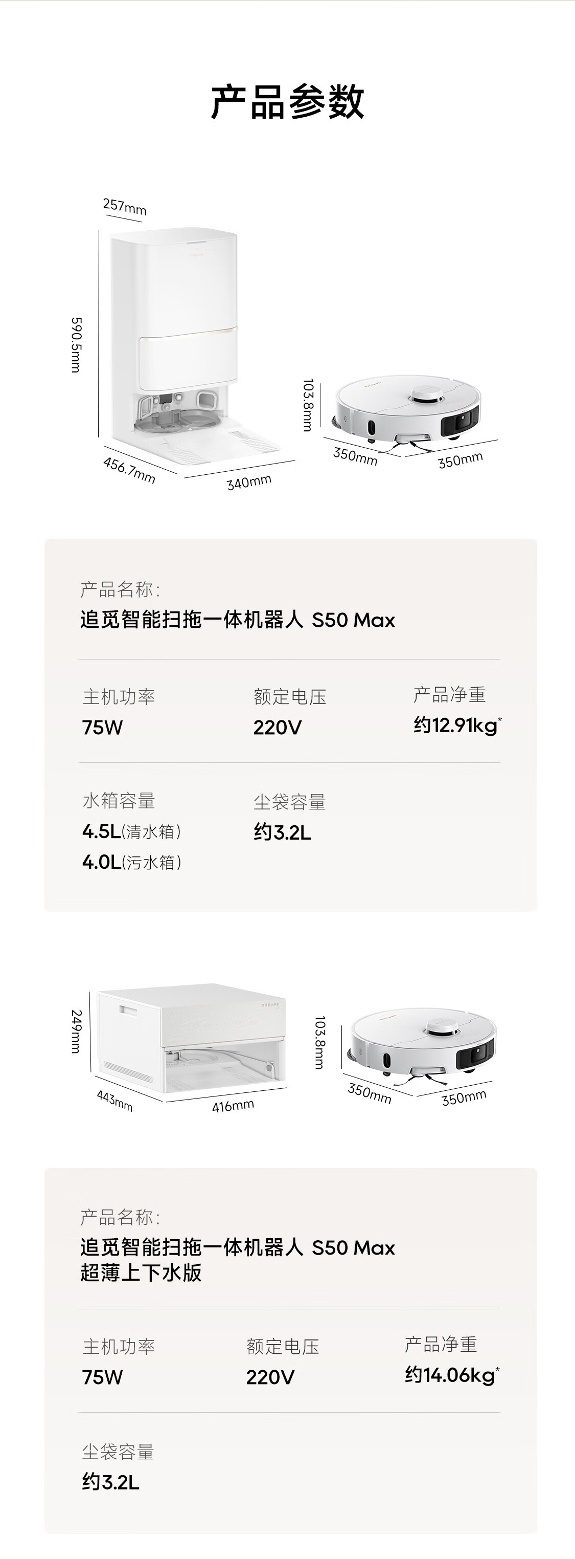 追觅 扫地机器人 S50 Max 水箱版 75W主机功率 白色(单位:台)