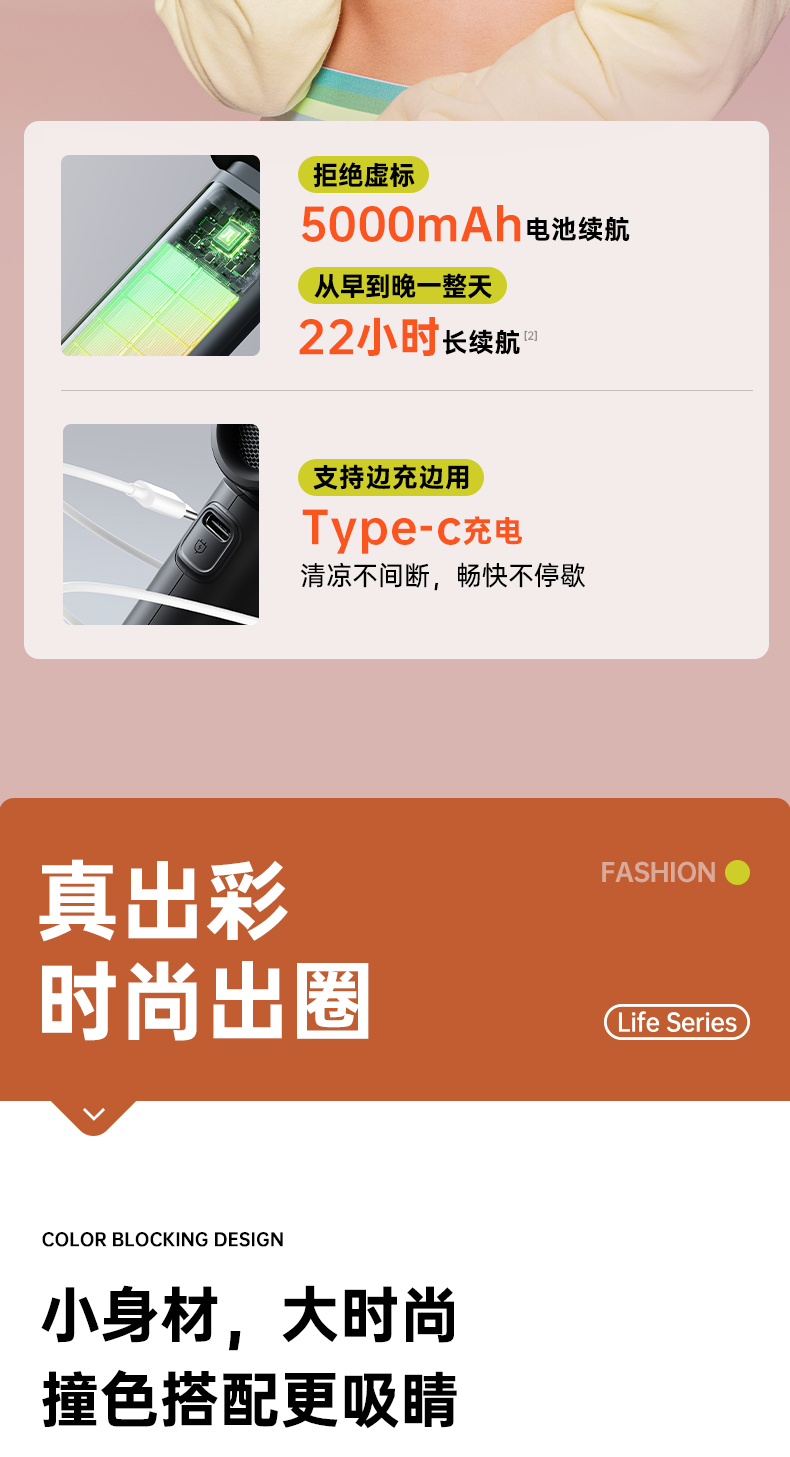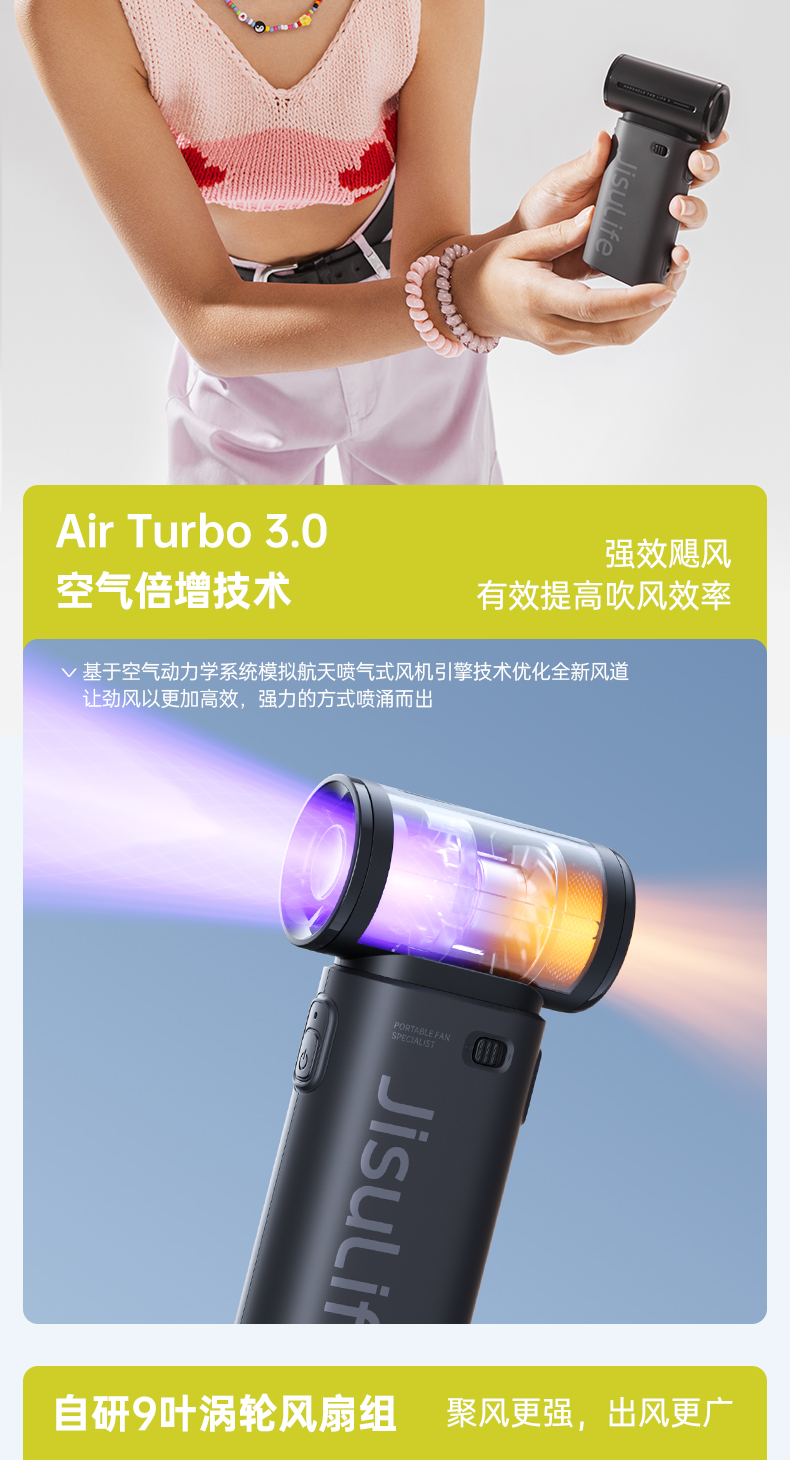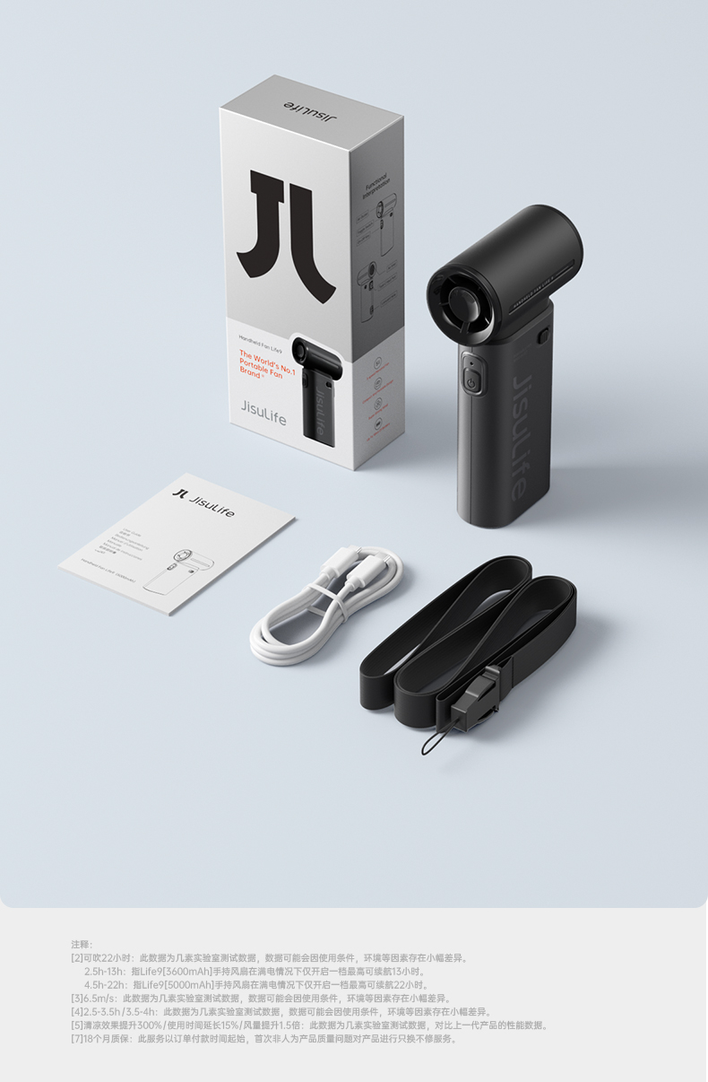 几素(JISULIFE) 小风扇 Handheld Fan Life9 5000mAh 黑色(单位:个)