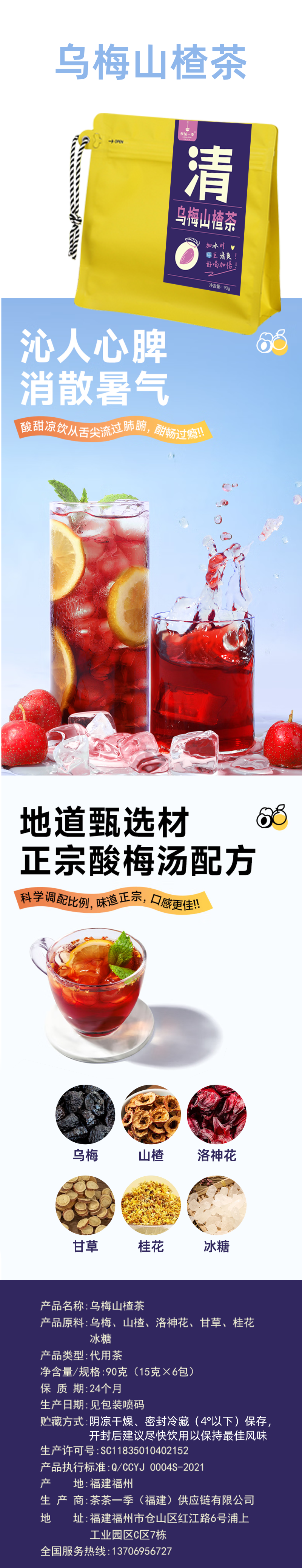 得一茶 袋泡茶调味茶 乌梅山楂茶 90g(15g*6袋) 黄色(单位:袋)