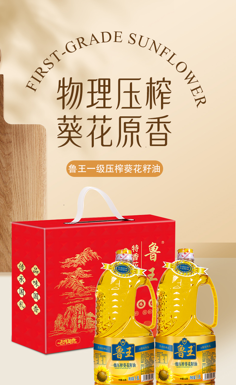 鲁王 一级压榨葵花籽油 礼盒 1.8L*2 混色(单位:组)