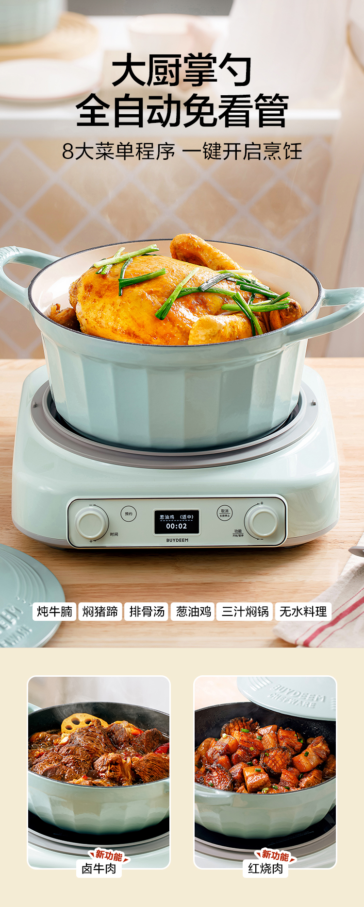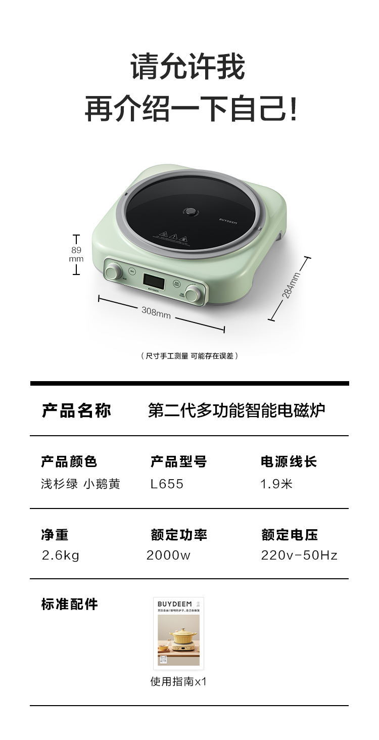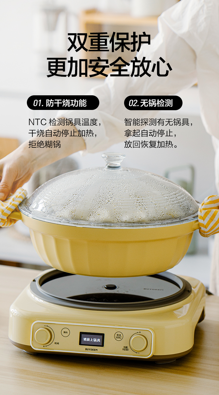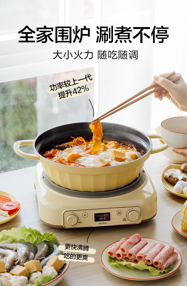 北鼎(Buydeem) 多功能一体电磁炉锅汤锅珐琅锅免火炒菜 L655 2000W 鹅仔黄(单位:个)