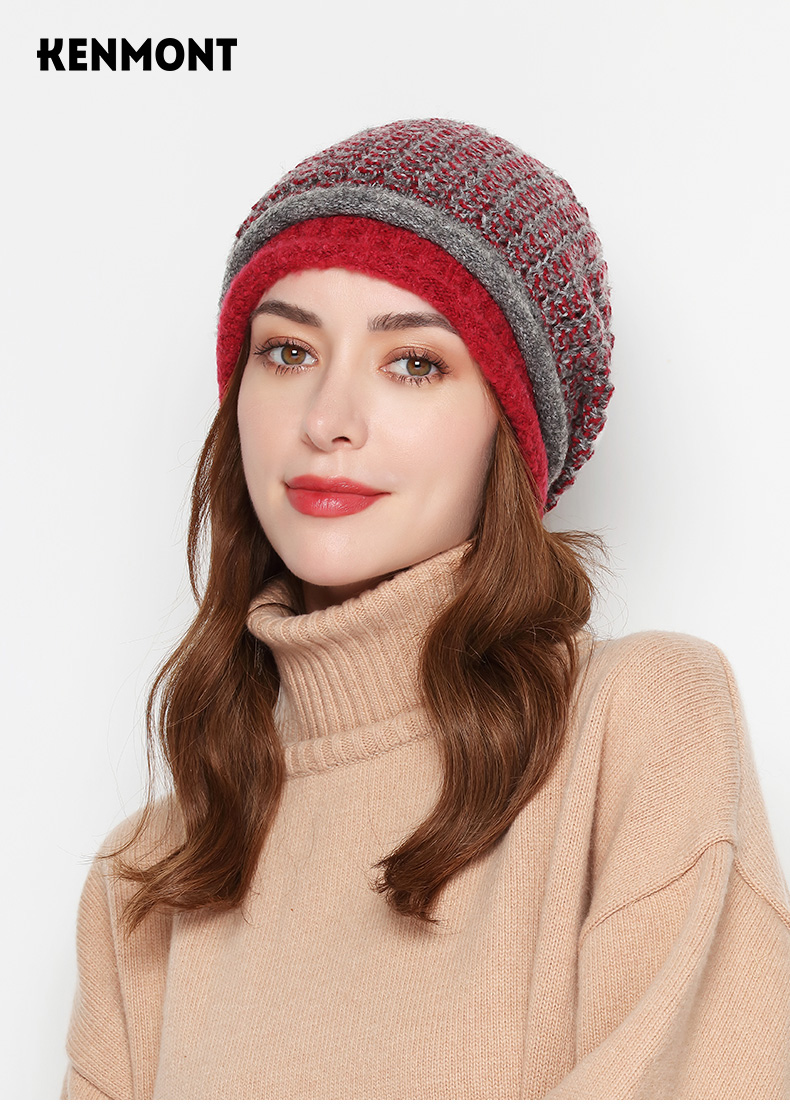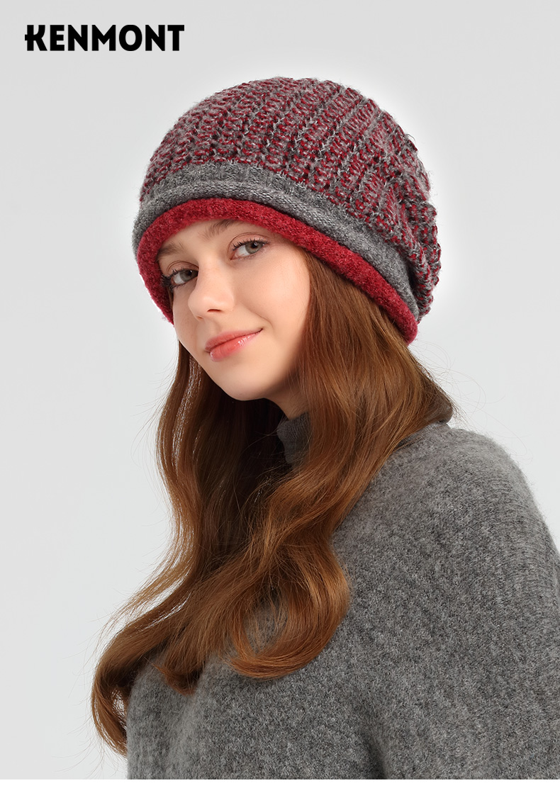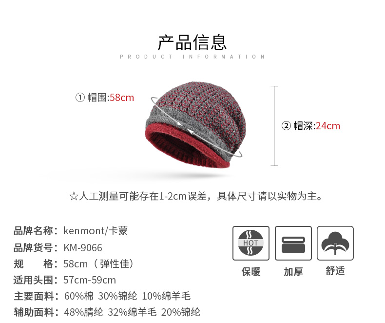 卡蒙(Kenmont) 双层卷边后托针织帽 KM-9066-63 均码(58cm) 孔雀蓝(单位:顶)