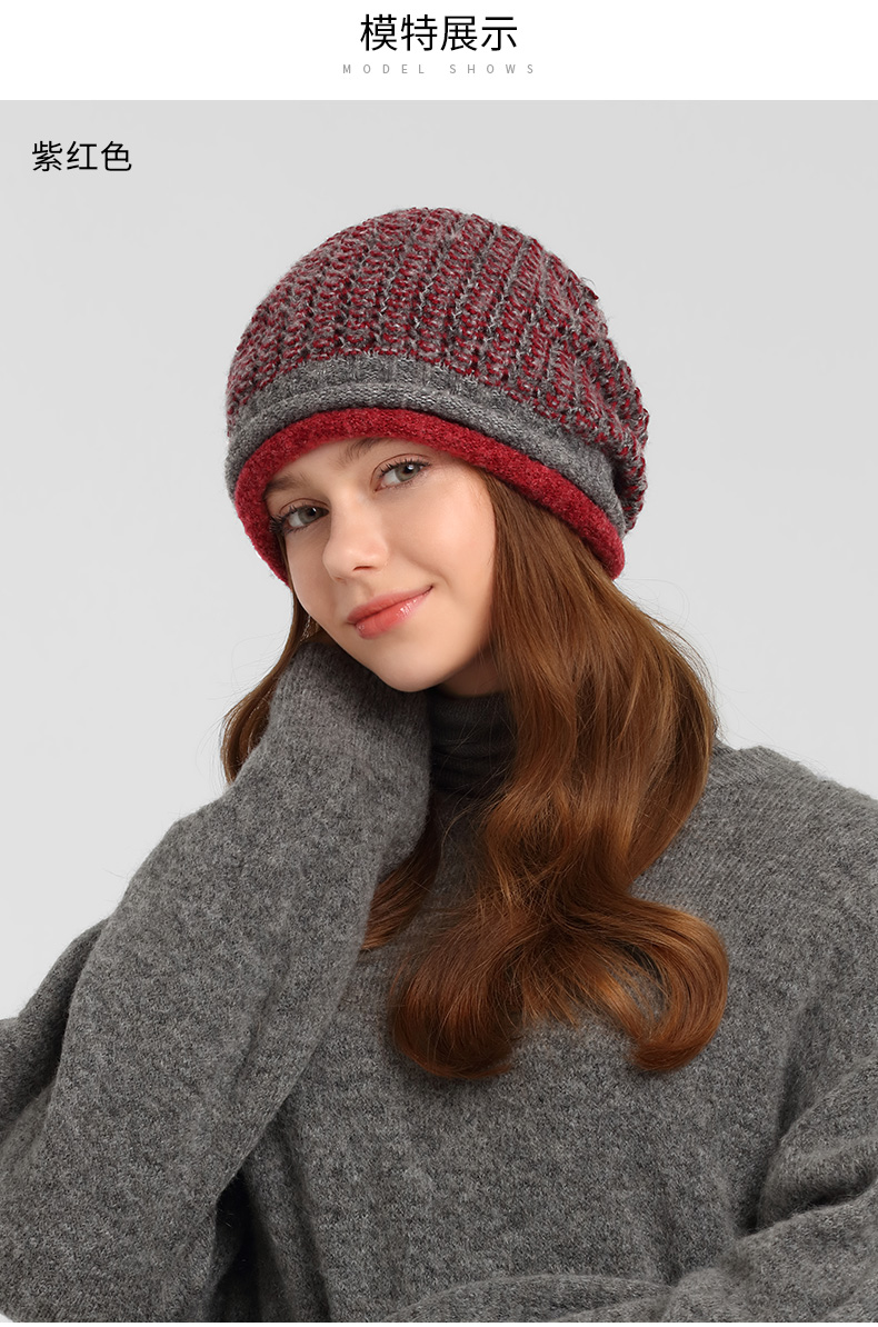 卡蒙(Kenmont) 双层卷边后托针织帽 KM-9066-64 均码(58cm) 紫红色(单位:顶)