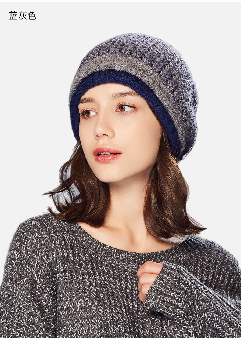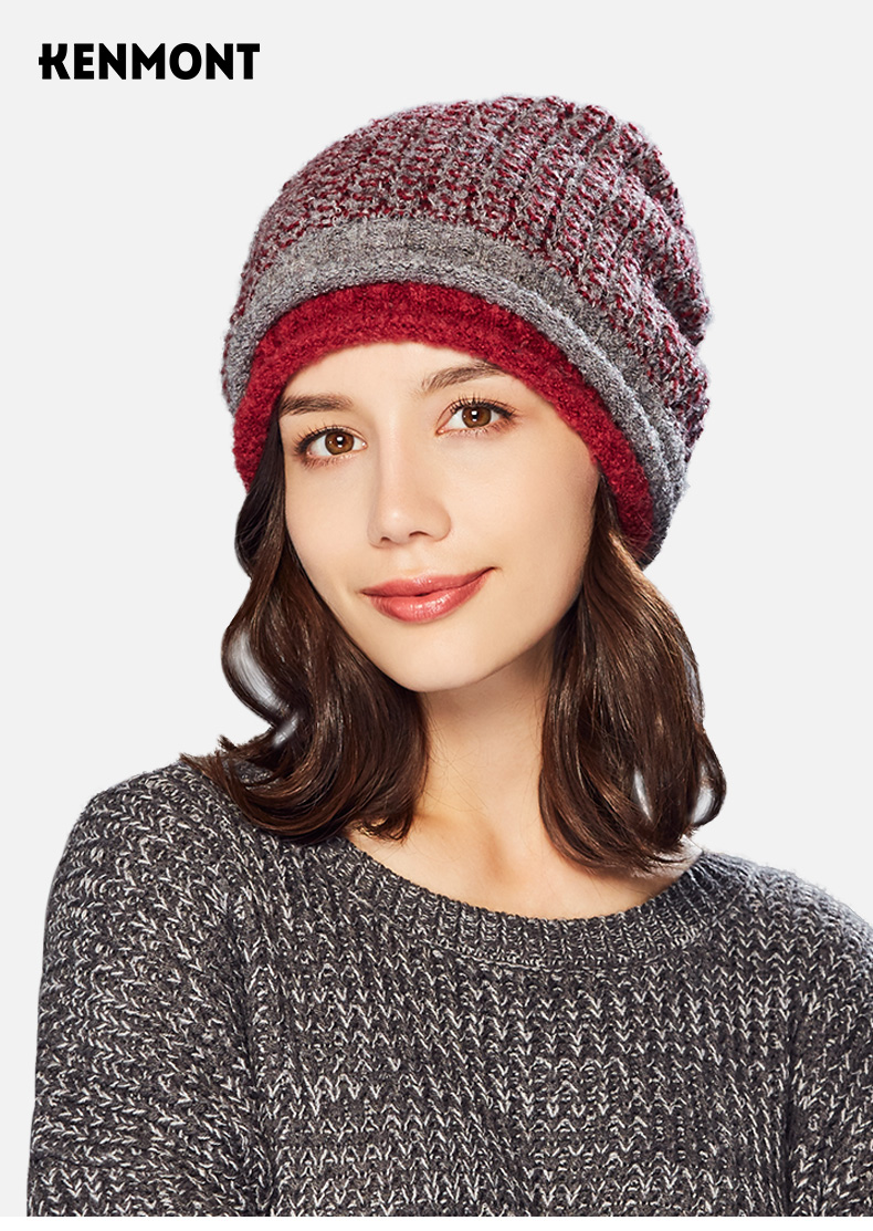卡蒙(Kenmont) 双层卷边后托针织帽 KM-9066-61 均码(58cm) 蓝灰色(单位:顶)