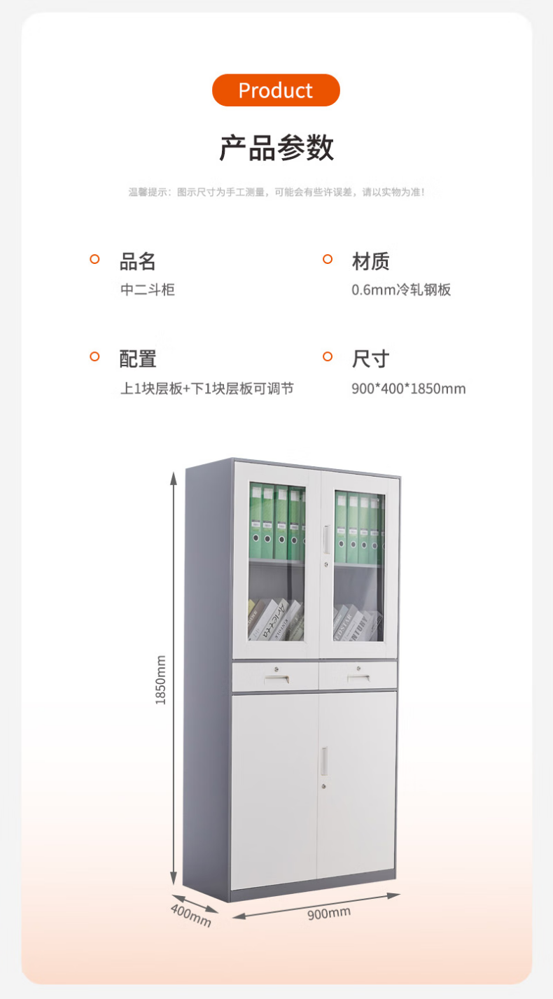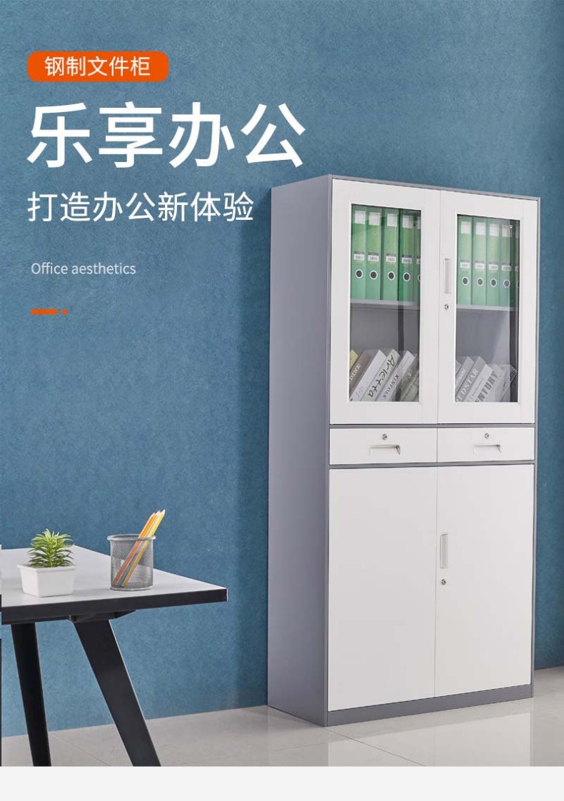 企诺 文件柜储物柜套色加厚中二斗柜 QA073 900*400*1850mm 灰白色(单位:台)