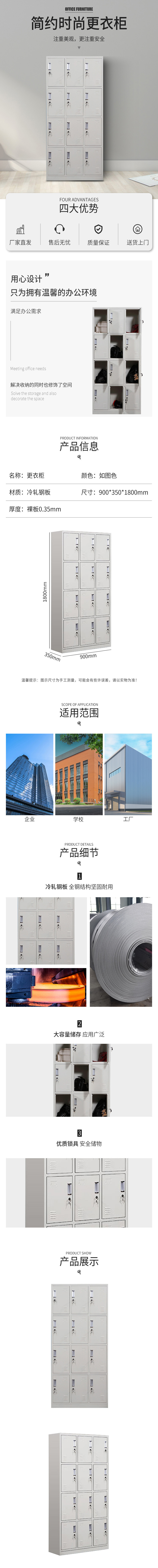 企诺 更衣柜储物柜收纳柜十二门 QB011 900*350*1800mm|0.4mm 灰白色(单位:个)
