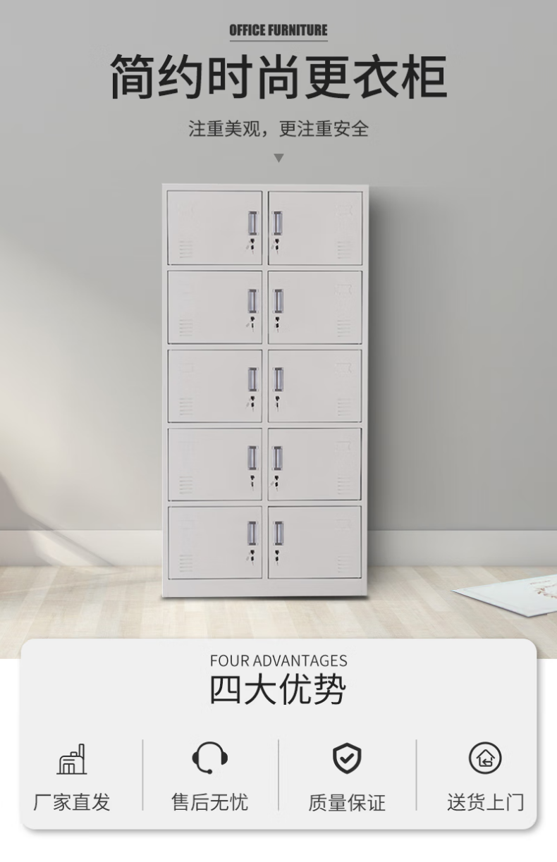 企诺 更衣柜储物柜收纳柜十门 QB022 850*390*1800mm|0.6mm 灰白色(单位:个)