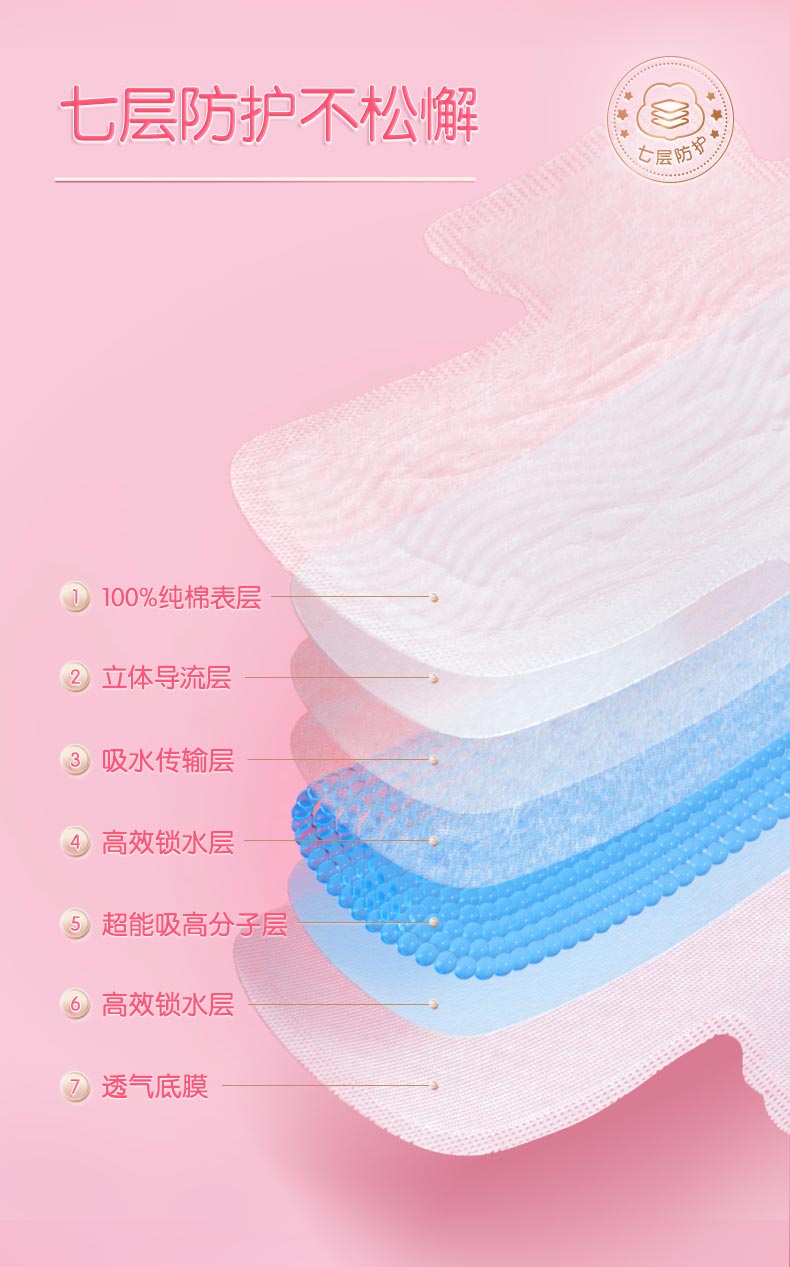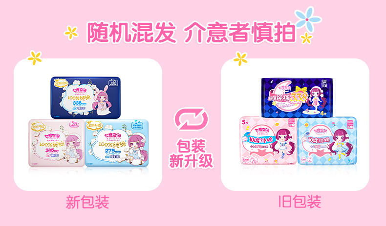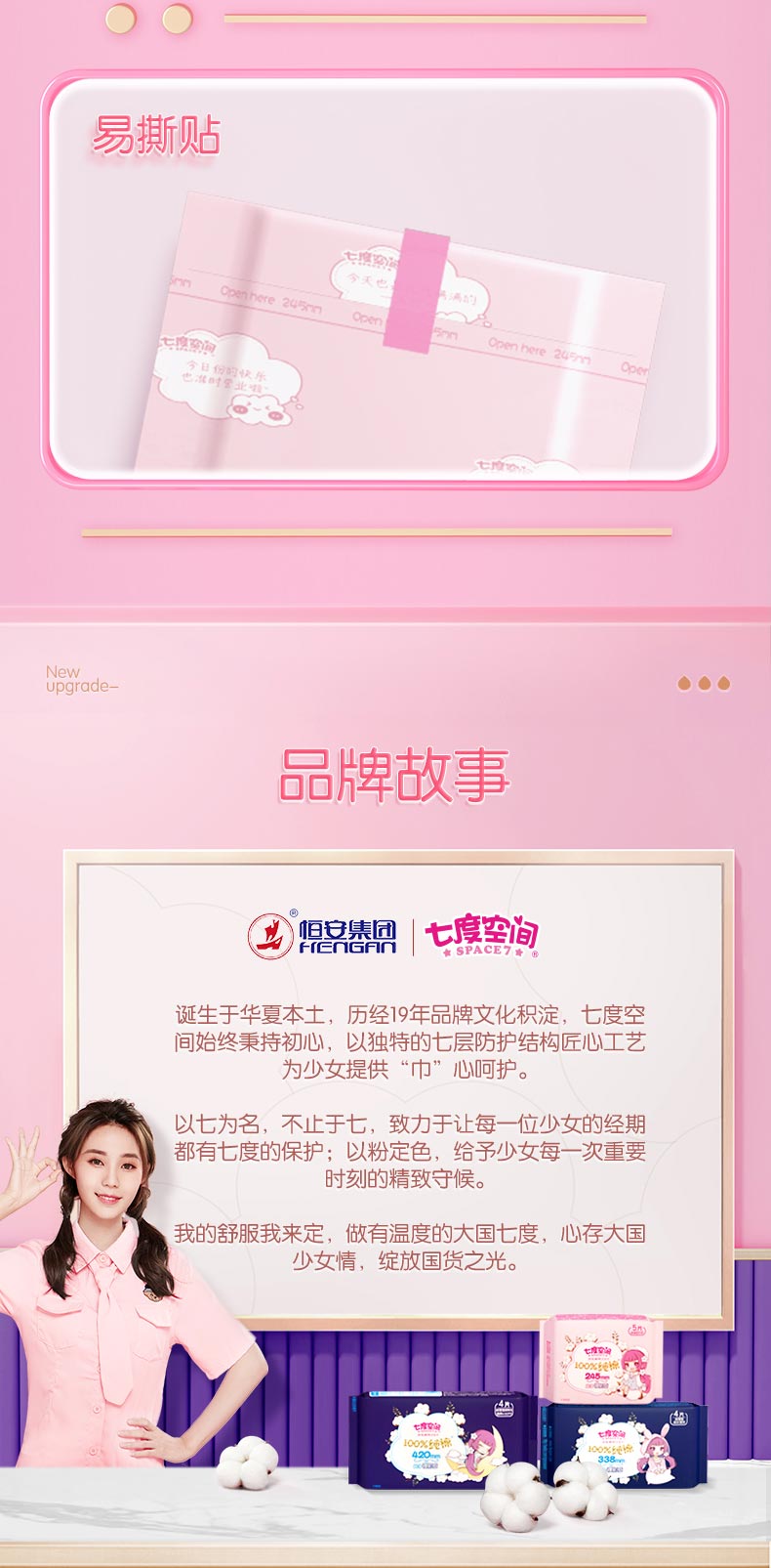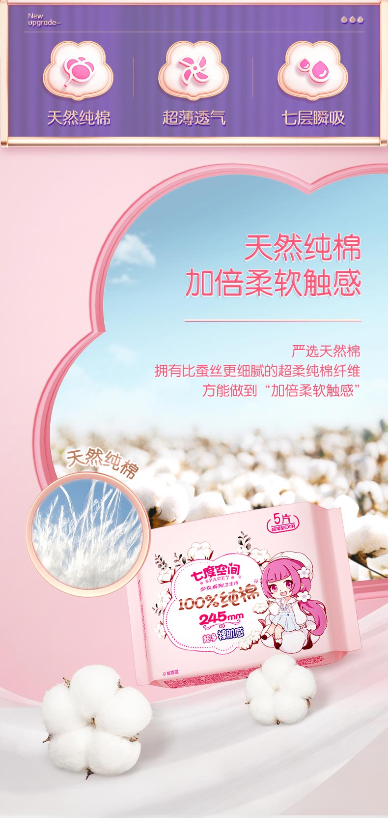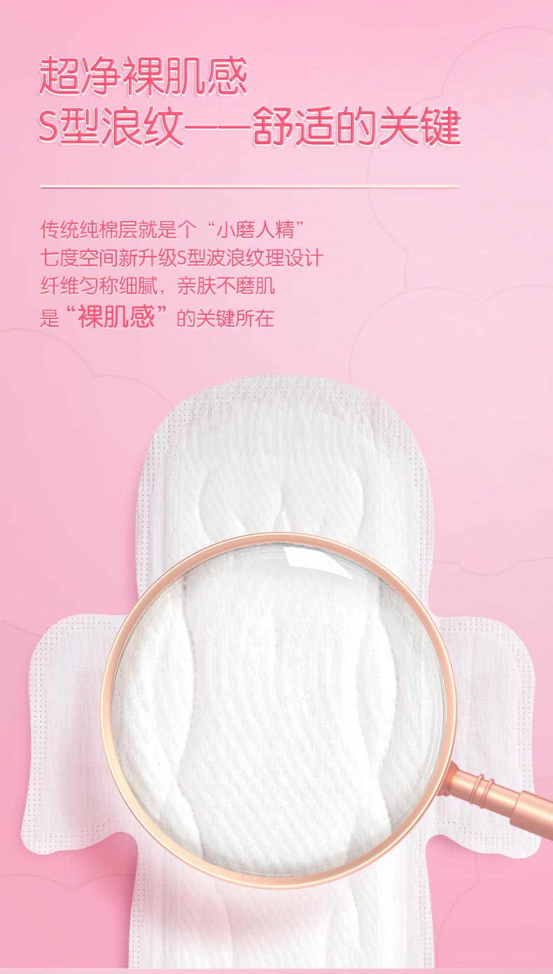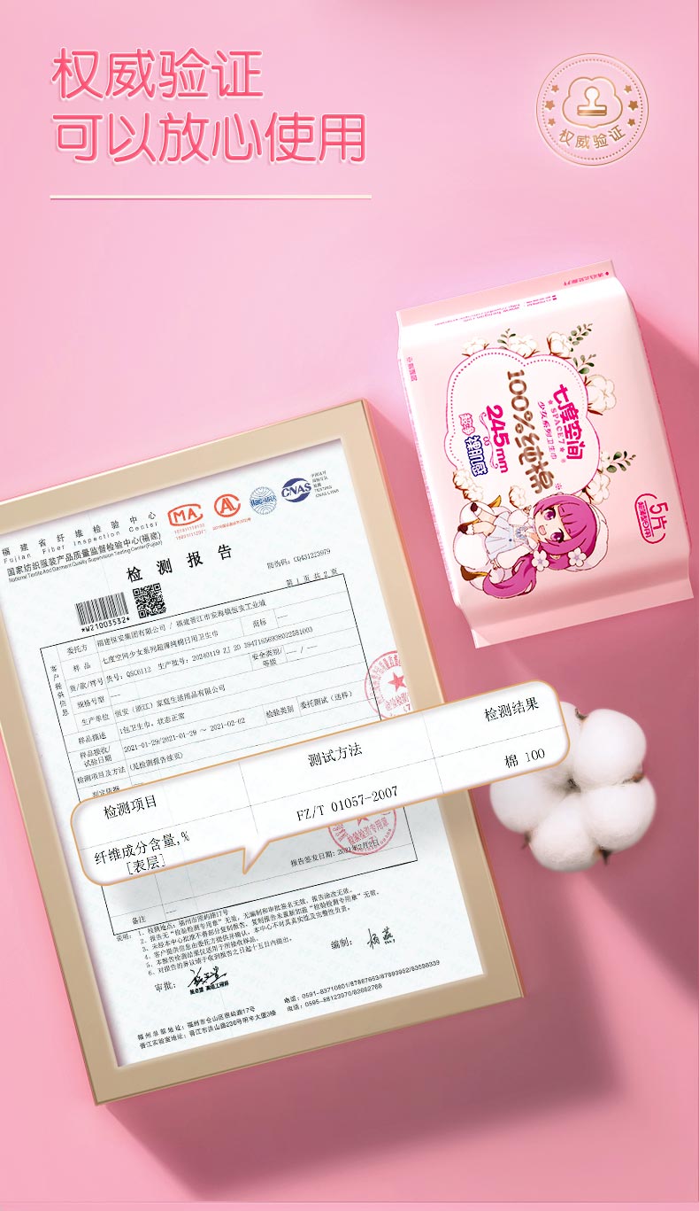 七度空间少女纯棉柔超薄日夜姨妈巾组合9包56片装 白色