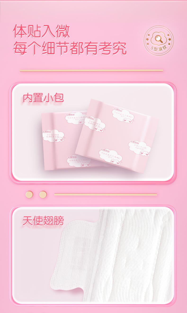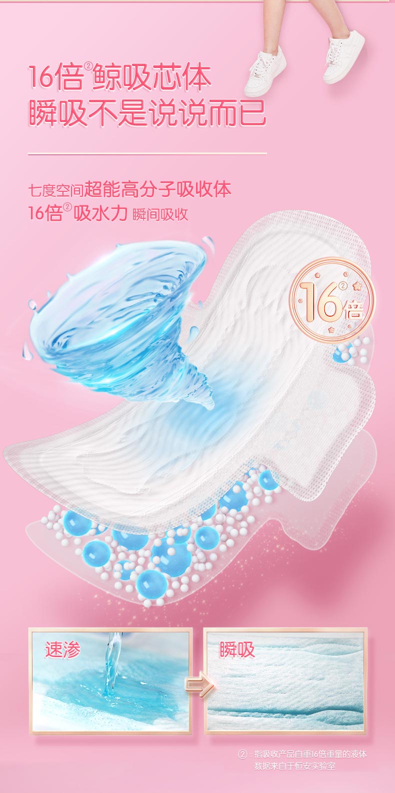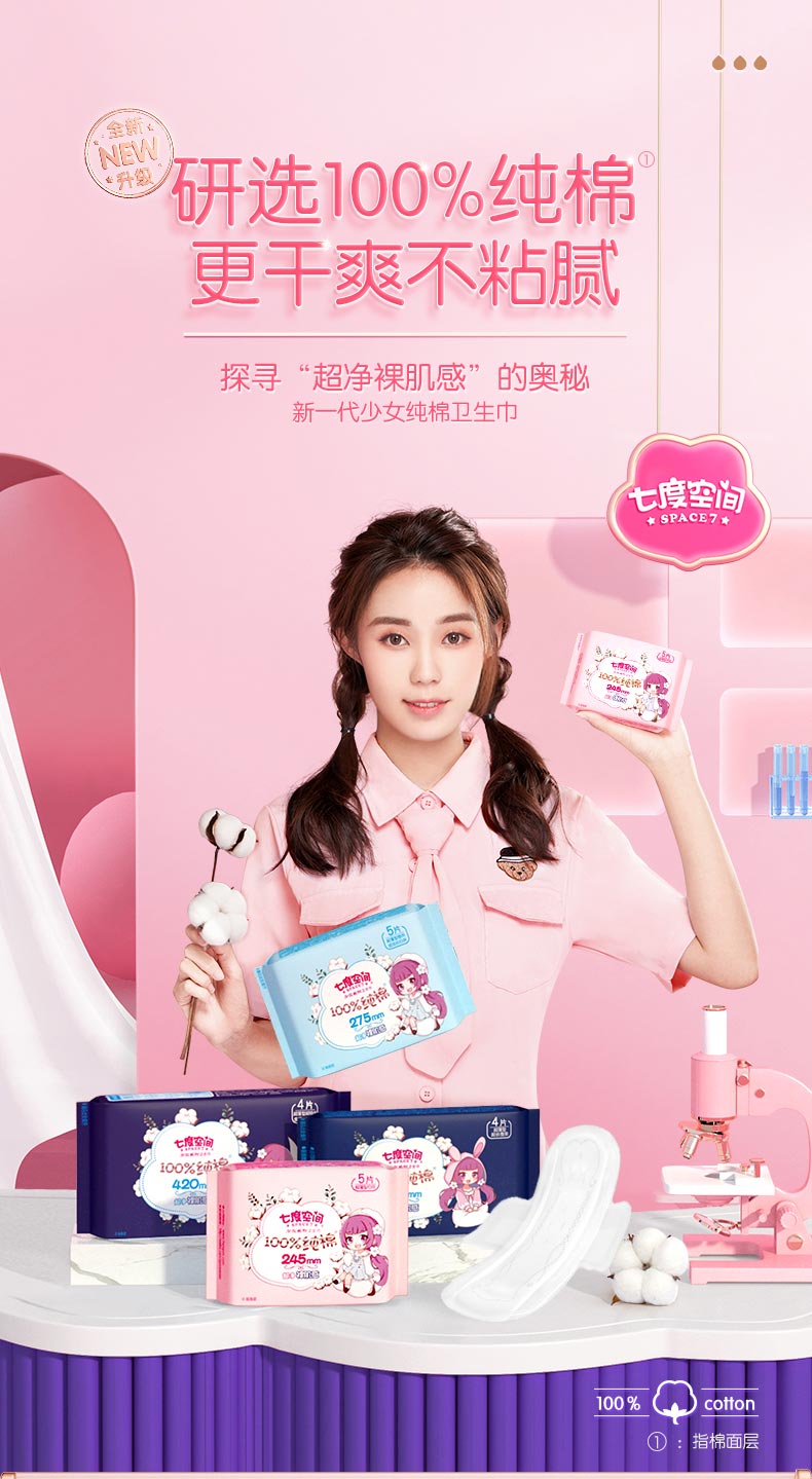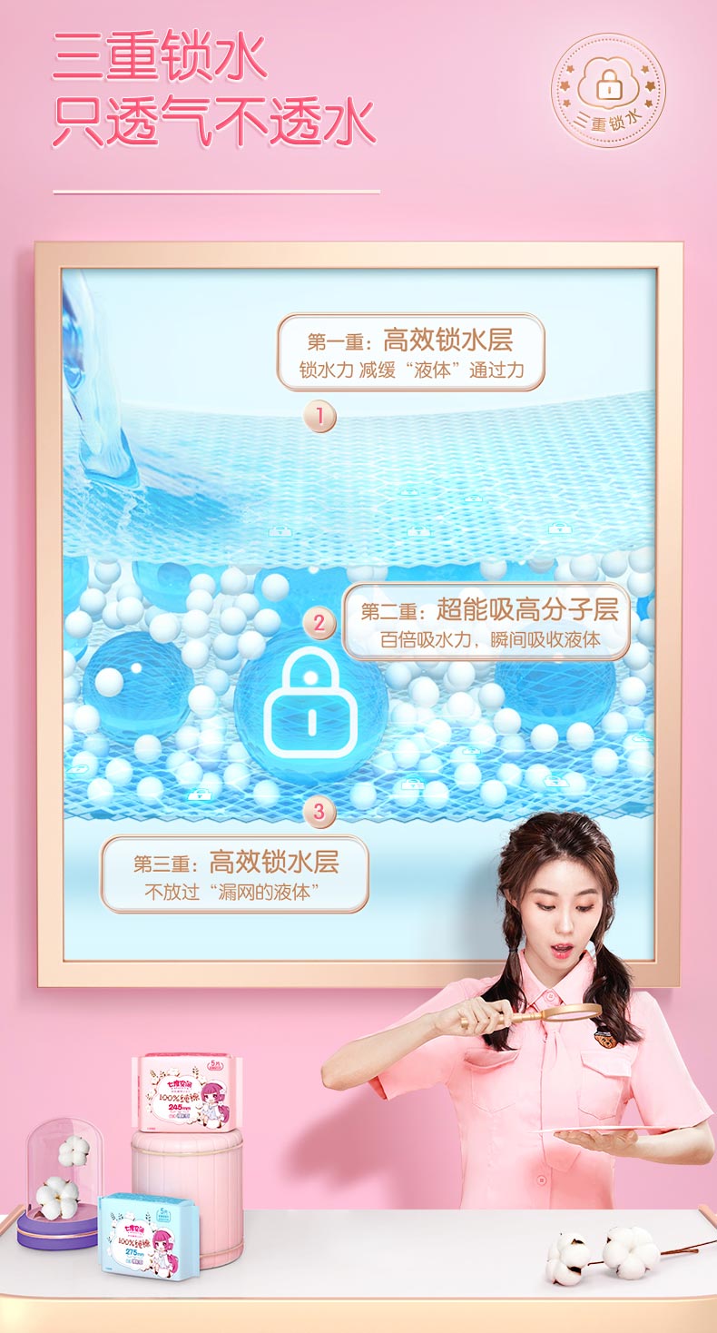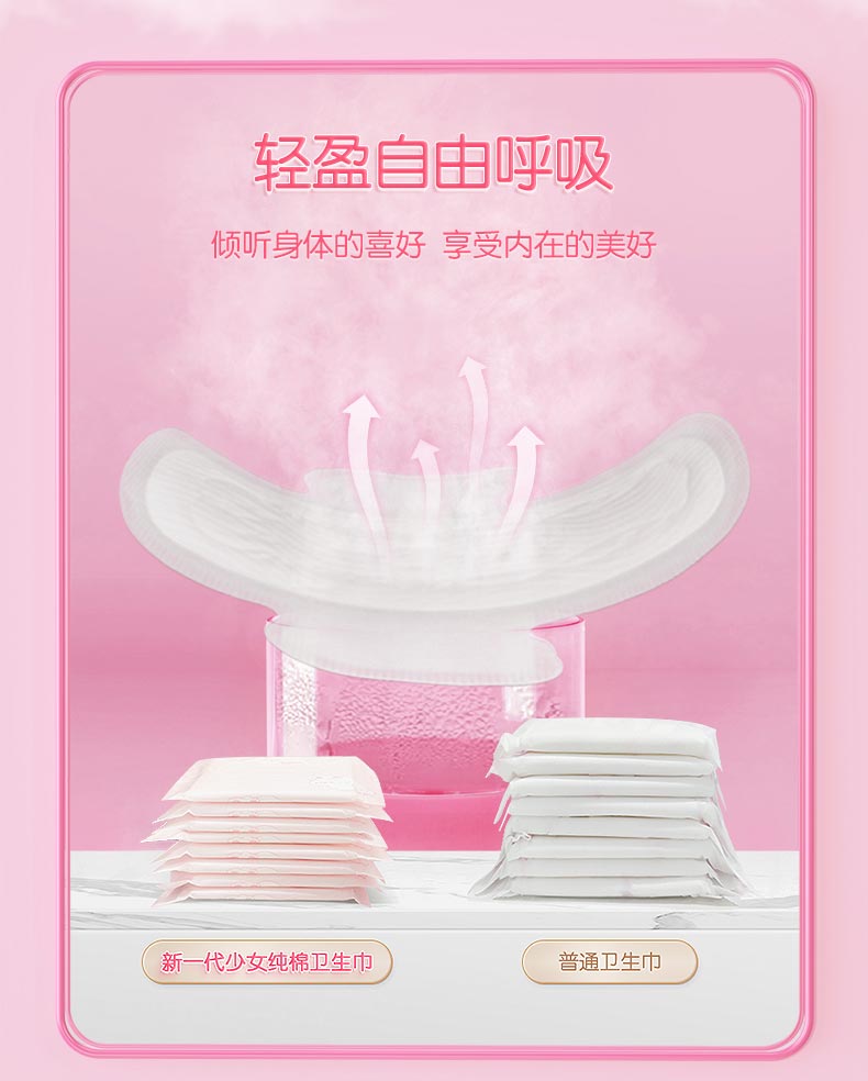 七度空间少女纯棉柔超薄日夜姨妈巾组合9包56片装 白色