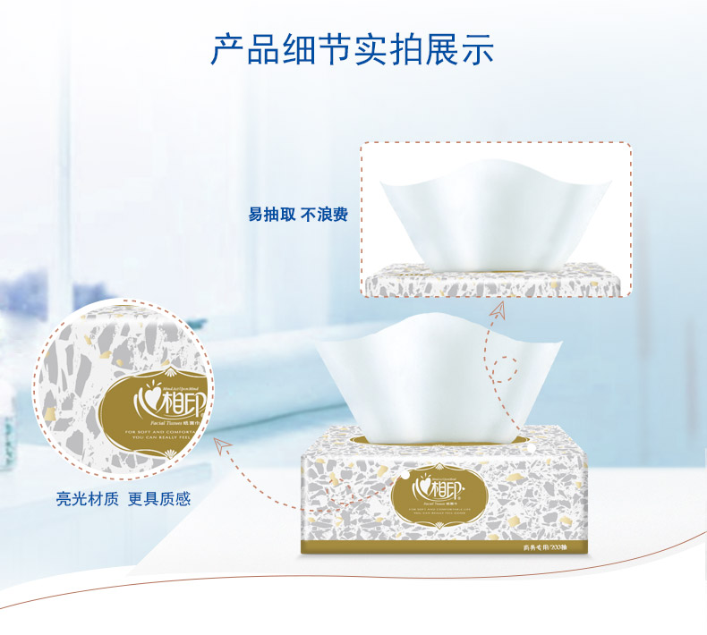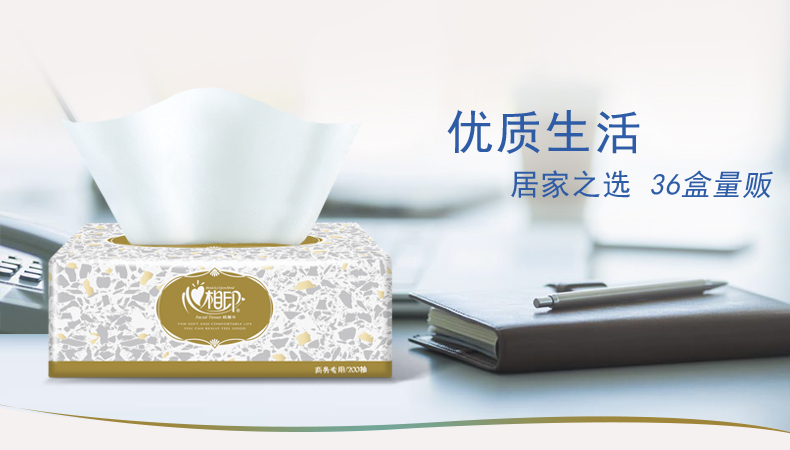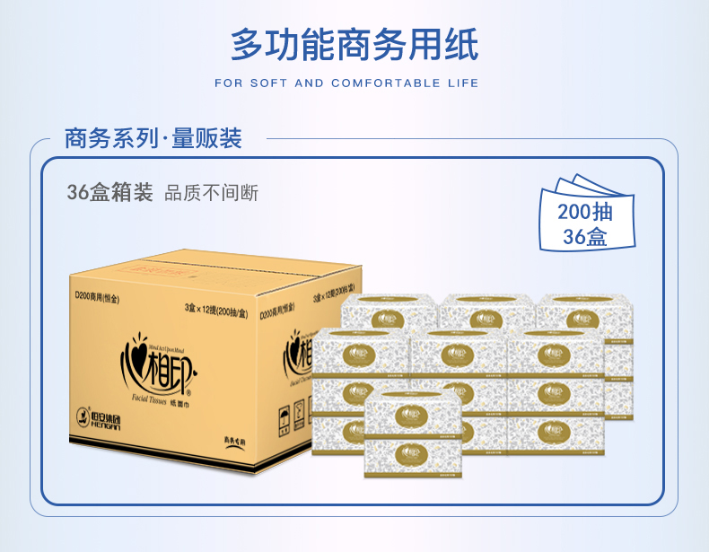 心相印商用金色盒装2层200抽纸面巾36盒D200(箱装) 白色