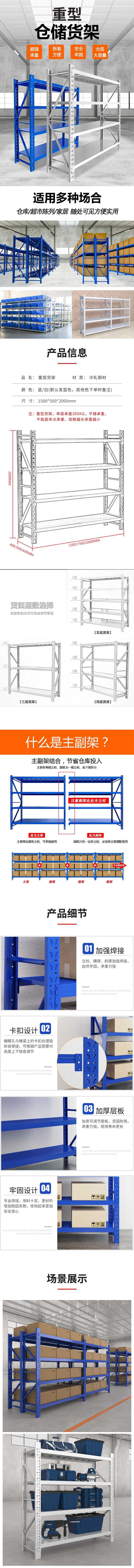 企诺 货架仓储架置物架重型主架 QNGlA103-4a1550B 1500*500*2000mm 蓝色(单位:组)
