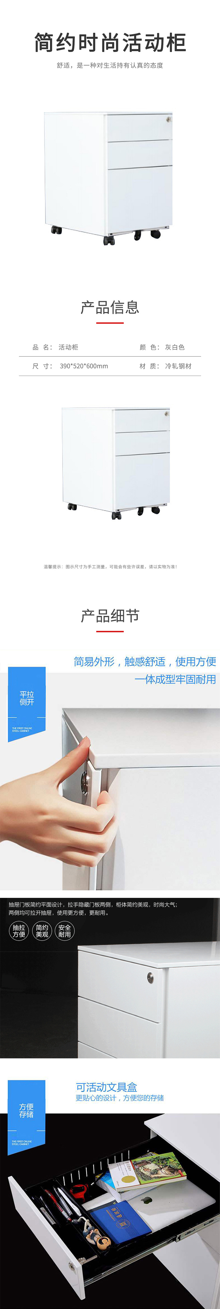 企诺 简约文件柜矮柜活动柜带锁 QA207 390*520*600mm 白色(单位:个)