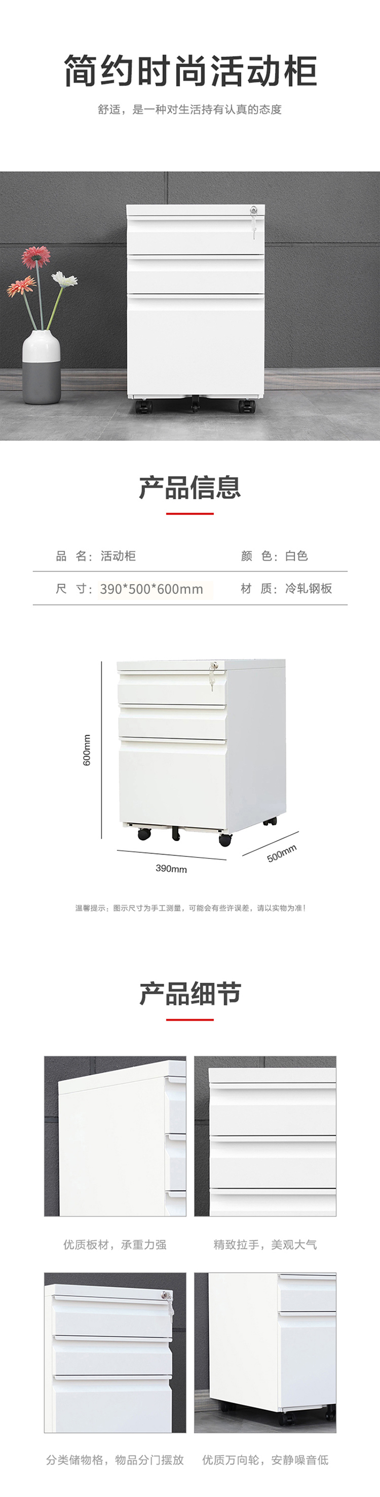 企诺 文件柜矮柜移动抽屉柜活动柜带锁 QA209 390*500*600mm 白色(单位:个)