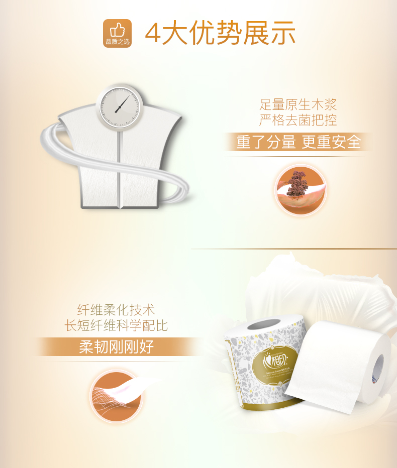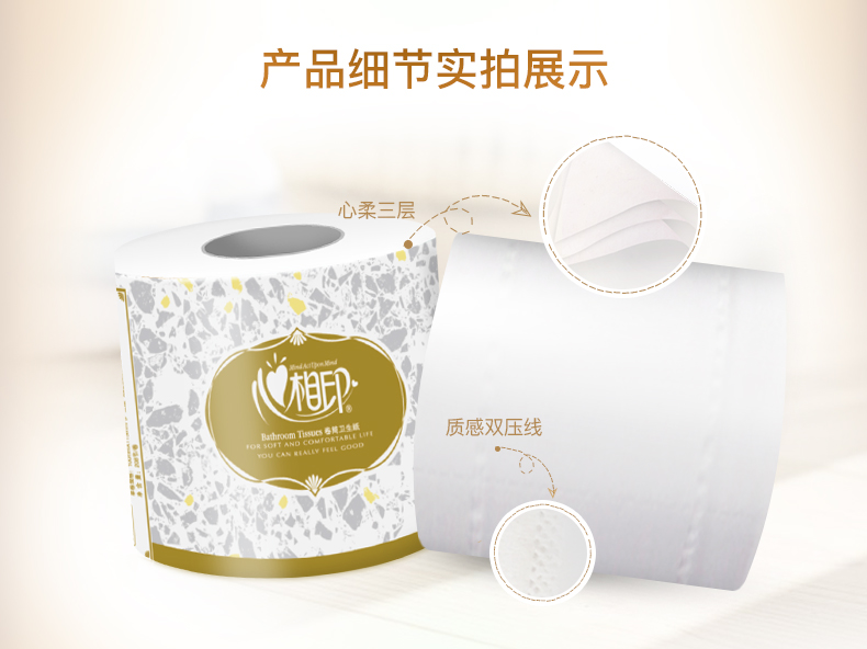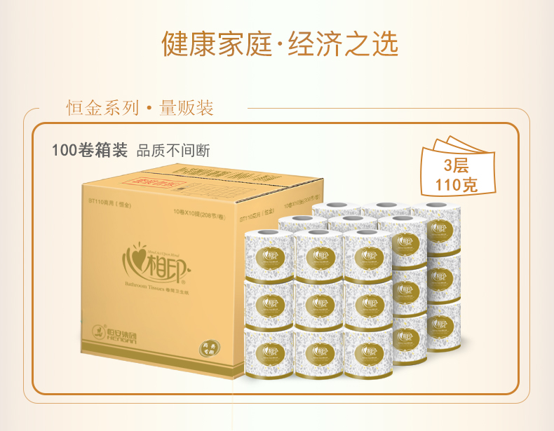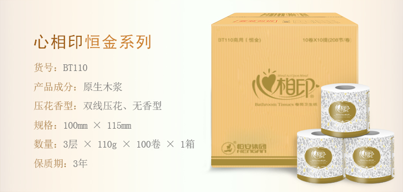 心相印(Mind Act Upon Mind)商用金色三层卫生卷纸BT110(110克*100粒)(单位:箱)白色