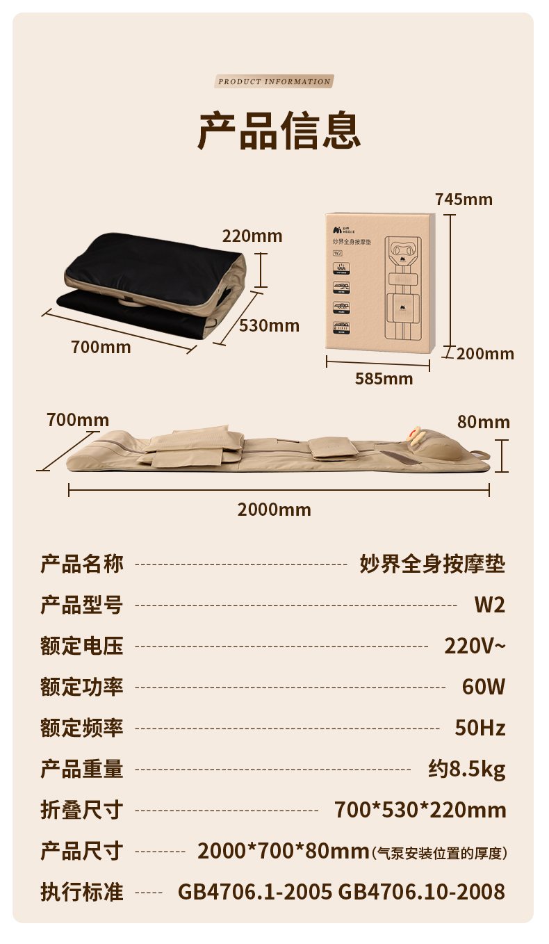 妙界(MIAOJIE) 全身按摩垫 W2 8.5kg 卡其色(单位:件)