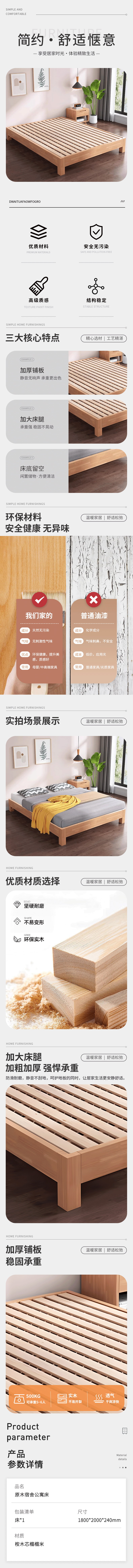 企诺 员工宿舍公寓床 QNMC-1800MM 1800*2000*240mm 原木色(单位:张)