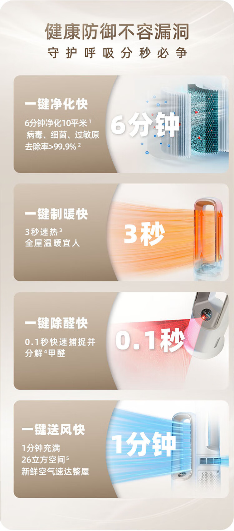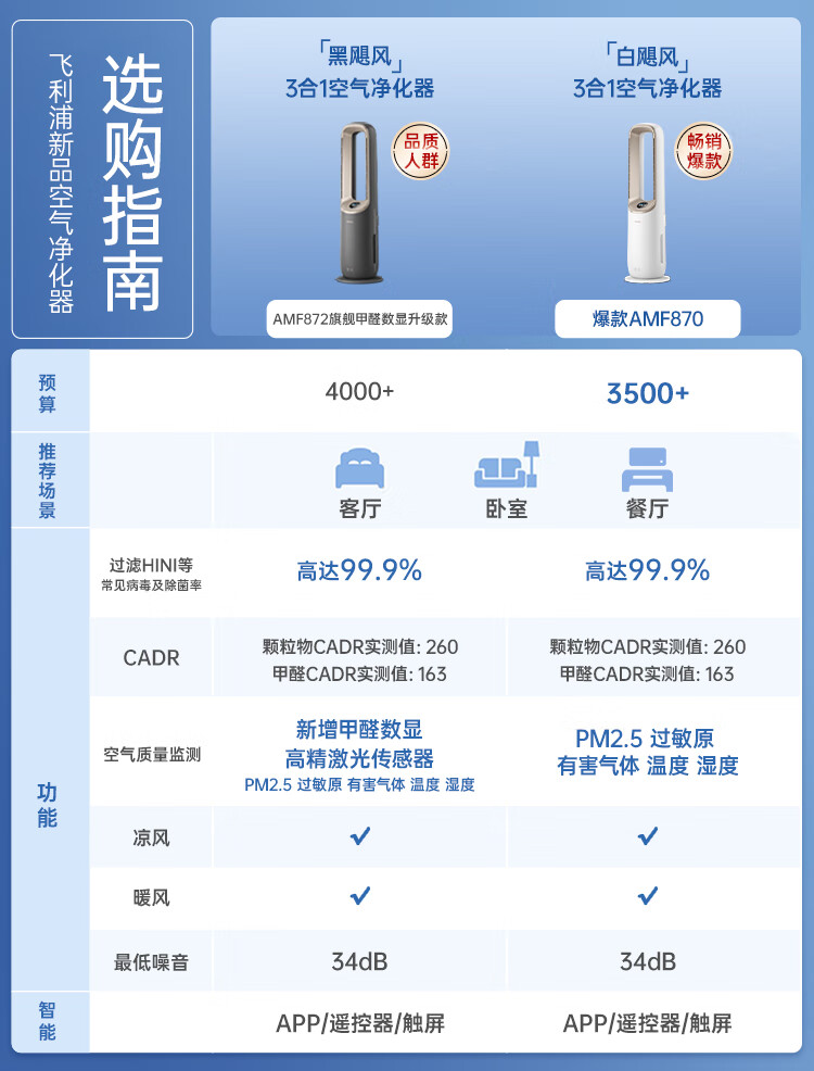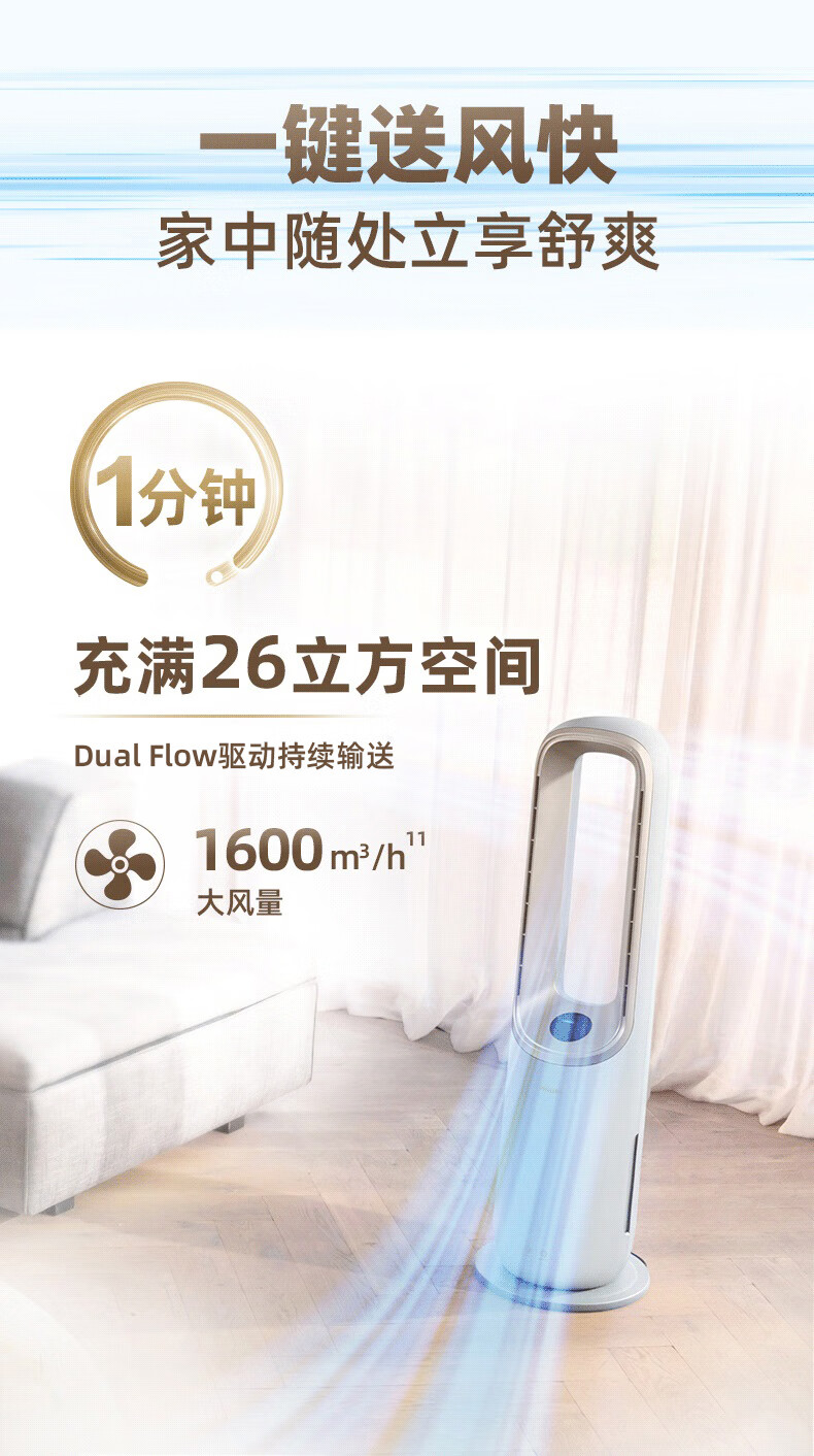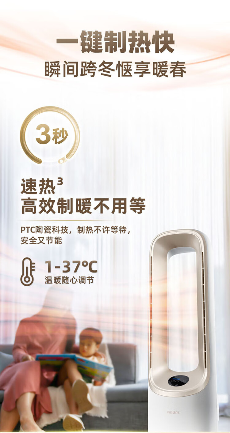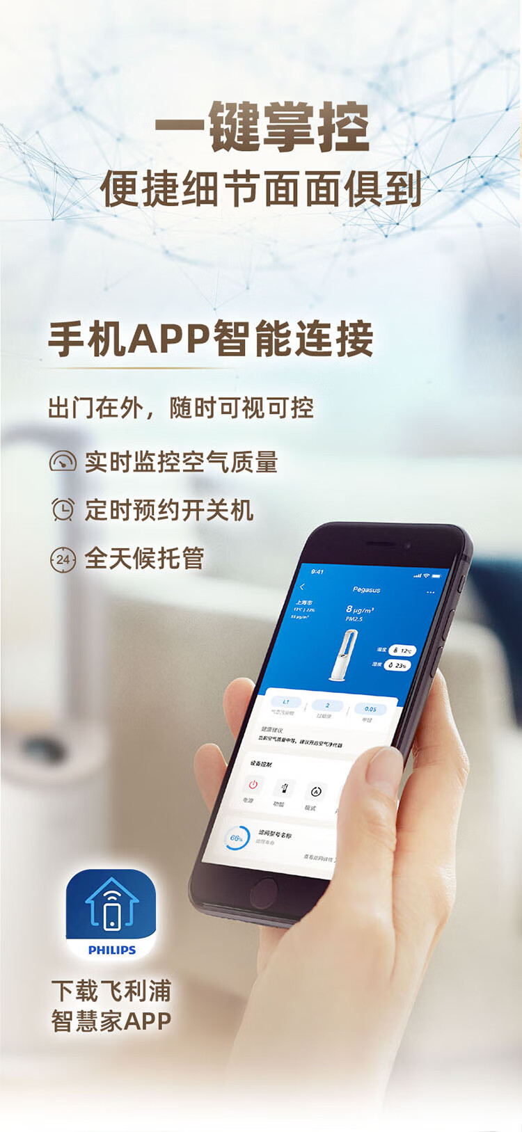 飞利浦(PHILIPS)净化凉风暖风三合一智能空气净化器AMF870/06取暖器电风扇家用除烟味除甲醛轻音智能无叶风扇(单位:台) 白色