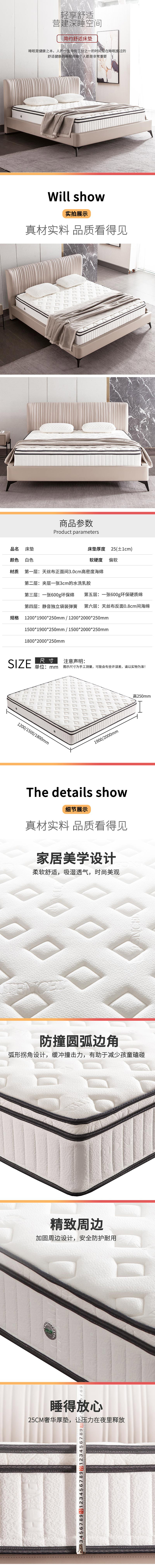 企诺 水洗乳胶垫静音独立袋装弹簧床垫厚款 QY321 1800*2000*250mm 白色(单位:张)