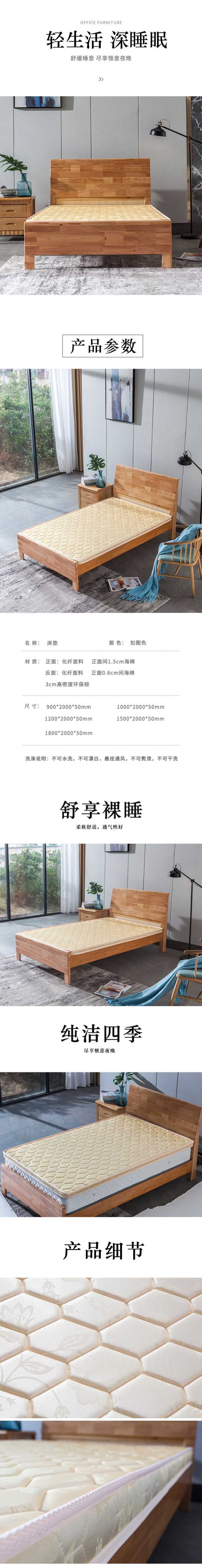 企诺 家用卧室床垫薄款 QY334 900*2000*50mm 黄色(单位:张)