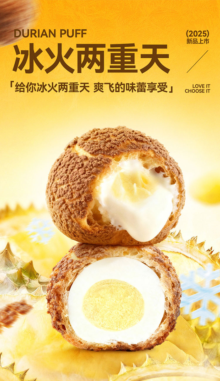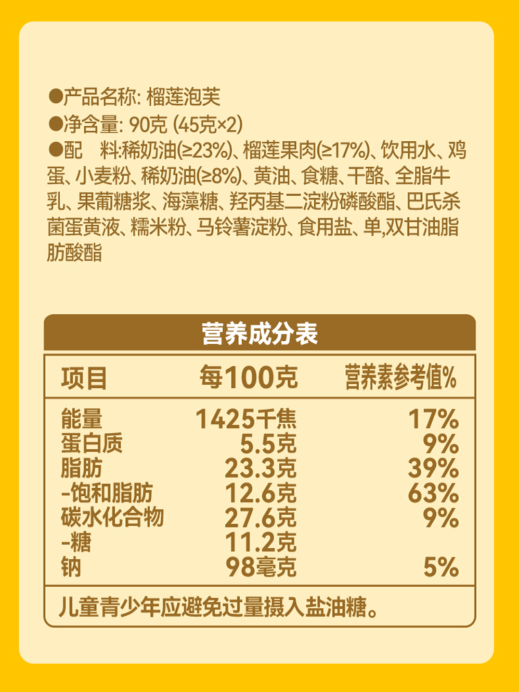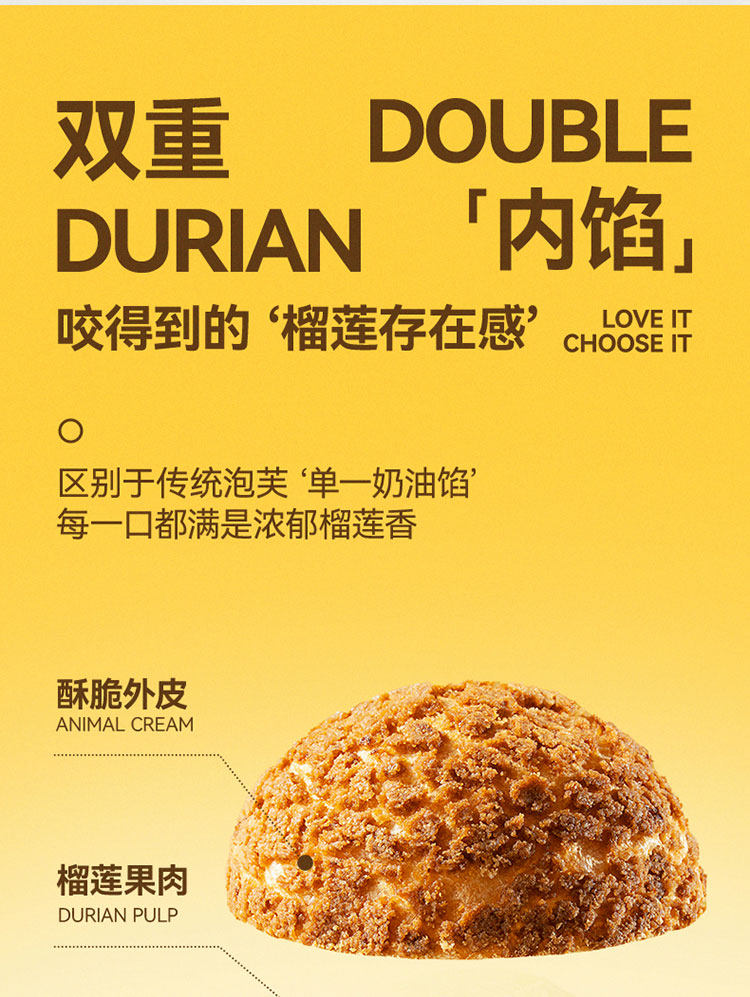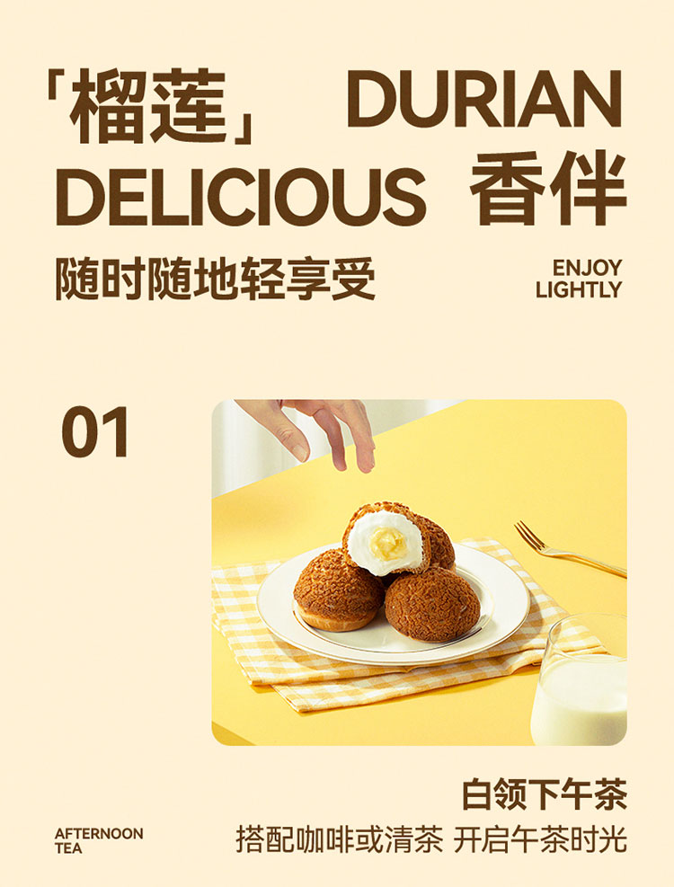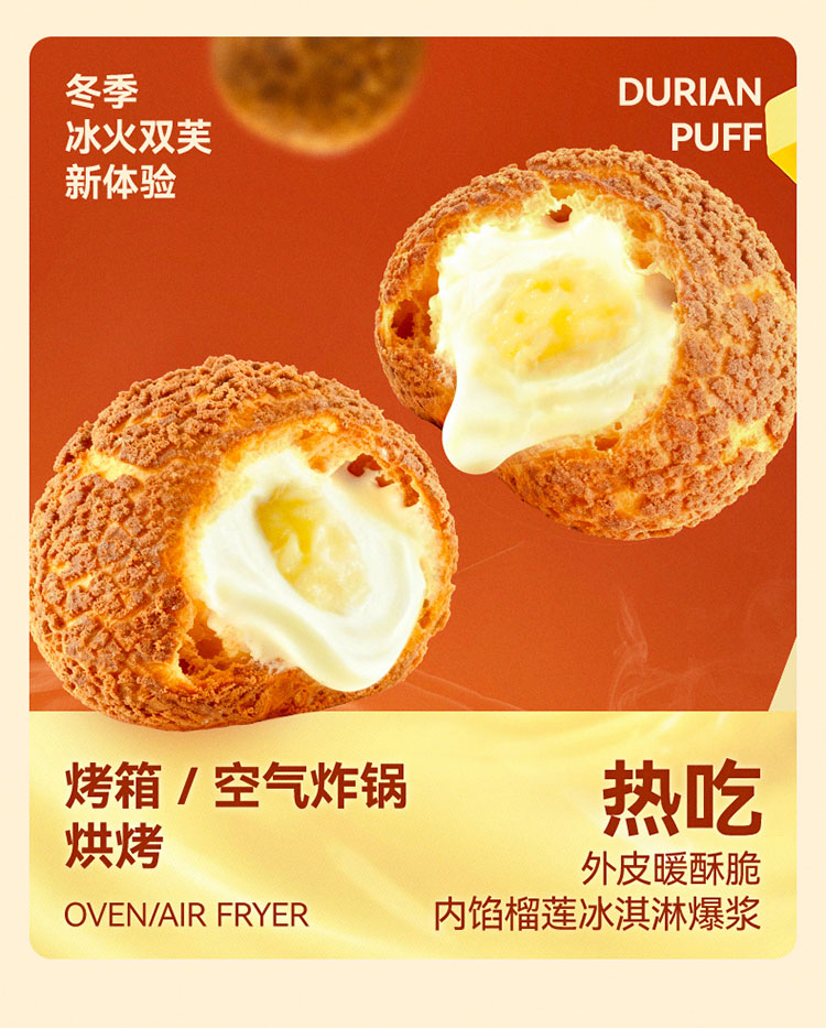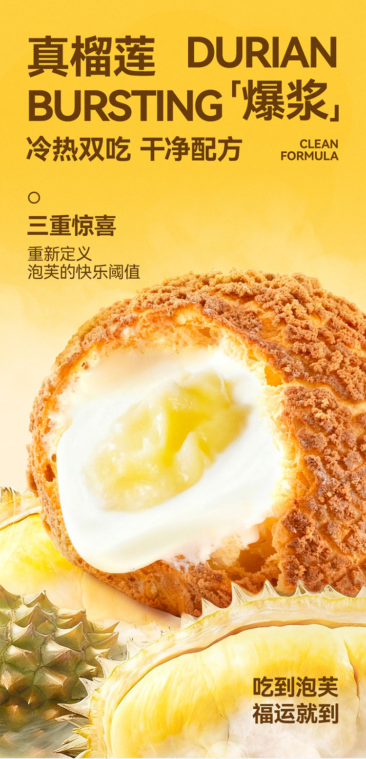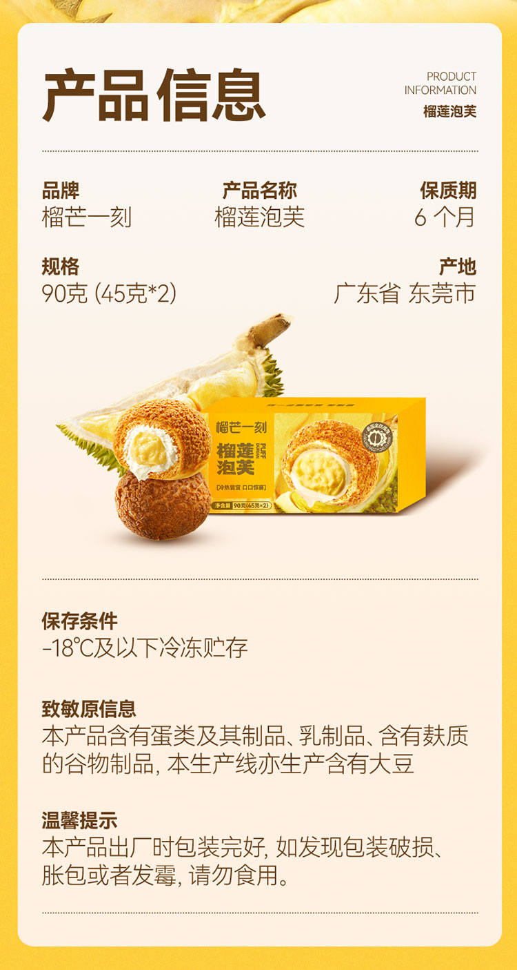 榴芒一刻 点心甜品 榴莲泡芙 45g*2枚*2盒 香槟金(单位:组)