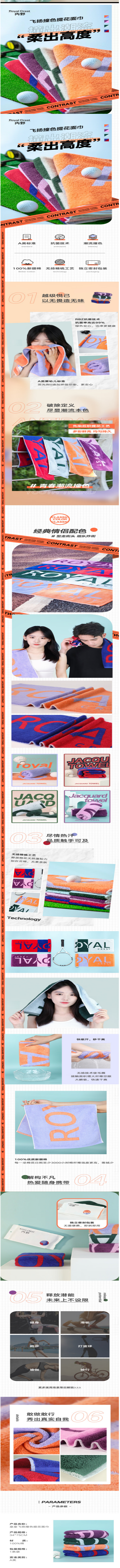内野(UCHINO) 飞扬撞色提花运动面巾 RC02004-N 34*75cm 混色(单位:条)