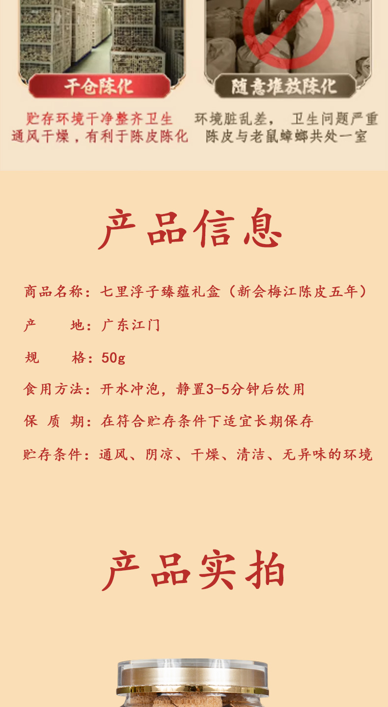 七里浮子 臻蕴礼袋(五年) 新会陈皮 50g*1罐 混色(单位:罐)