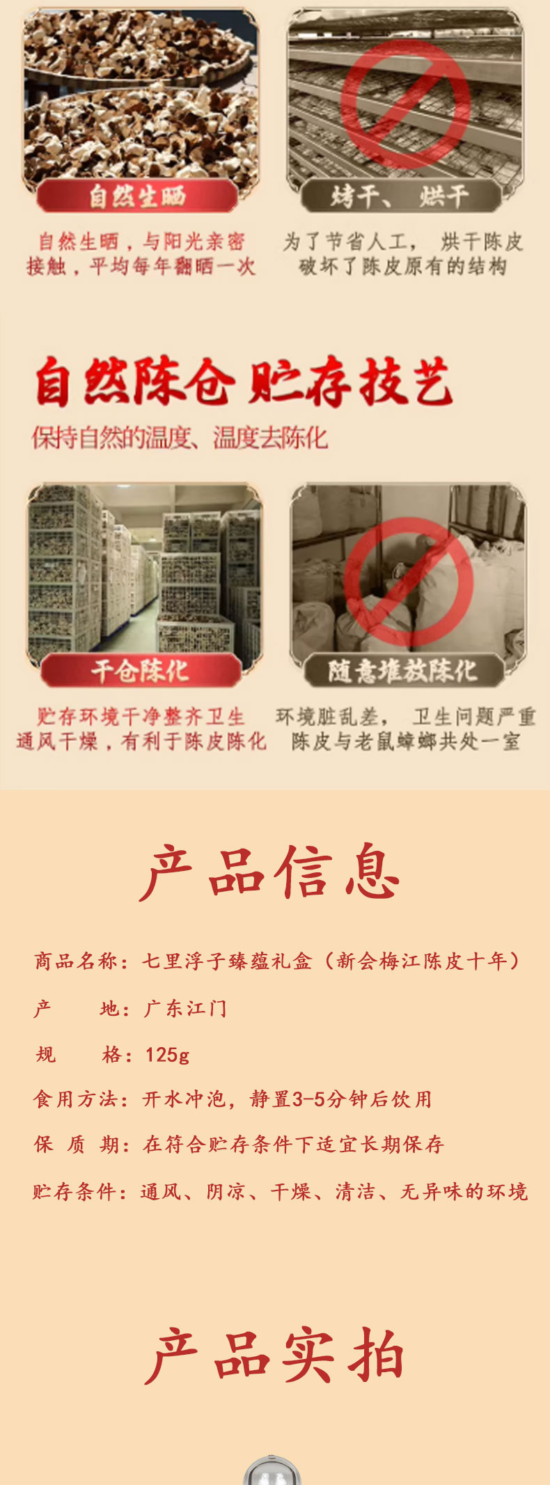 七里浮子 新会陈皮十年 臻蕴礼盒 125g*1盒 混色(单位:盒)