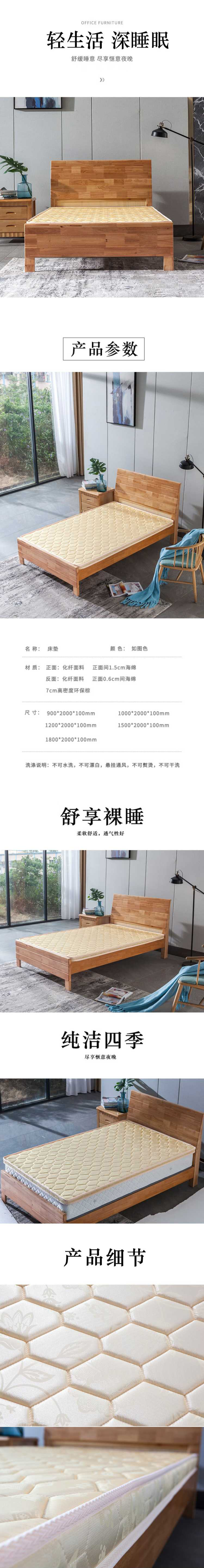 企诺 宿舍环保棕床垫常规 QY346 1200*2000*100mm 黄色(单位:张)