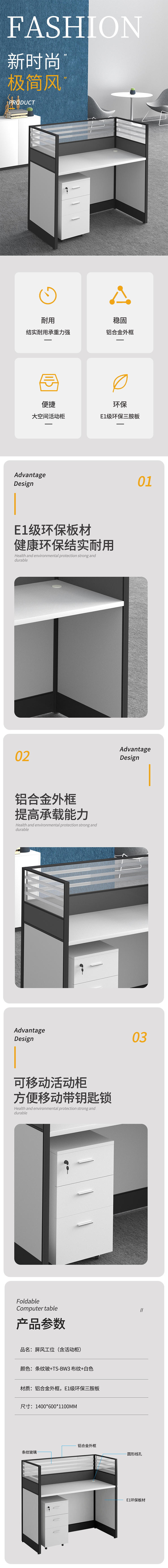 企诺 办公桌屏风工位职员桌直行单人位 QM002 1400*600*1100mm 灰色(单位:张)