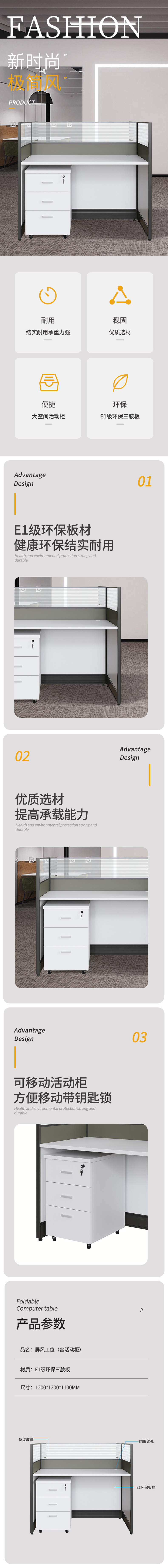 企诺 简约现代屏风工位两人对坐含活动柜 QM003 1200*1200*1100mm 灰色(单位:张)