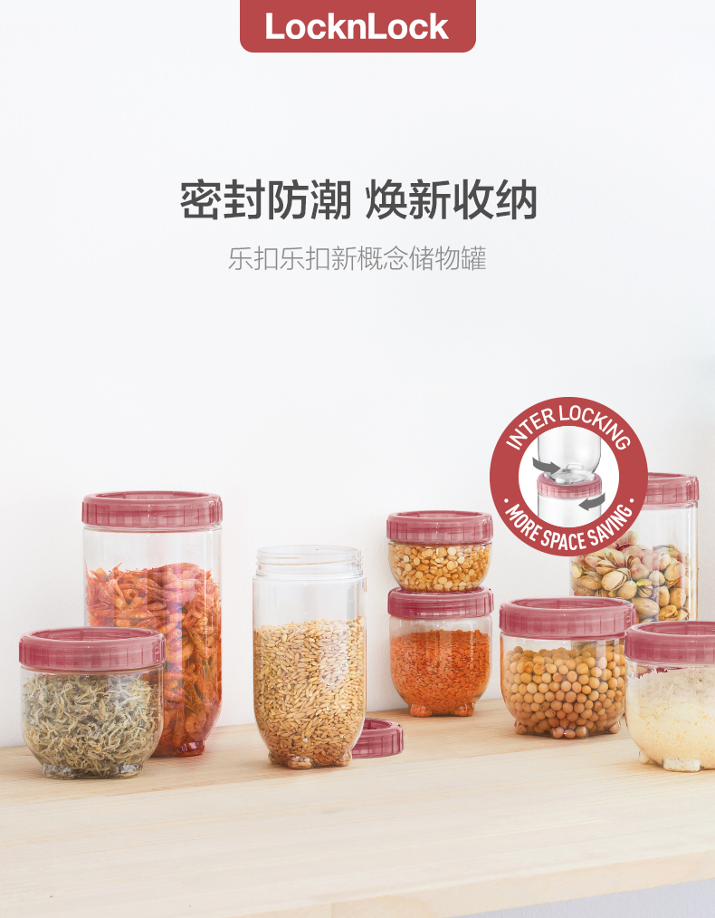 乐扣乐扣(LOCK&LOCK)新概念储物罐3件套INL301S002N(1.6L*1,1.0L*1,0.5L*1) 红色