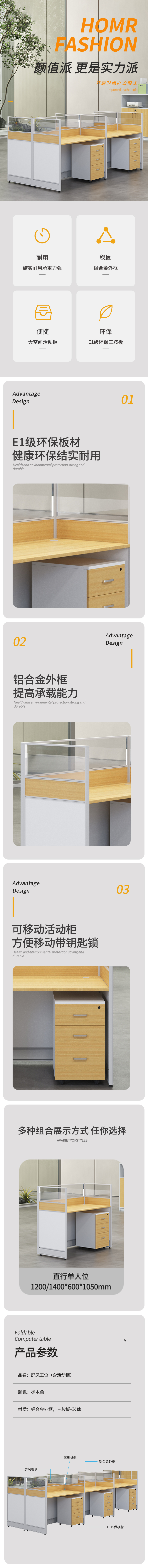 企诺 屏风工位办公桌职员桌直形单人位 QM013 1200*600*1050mm 枫木色(单位:张)