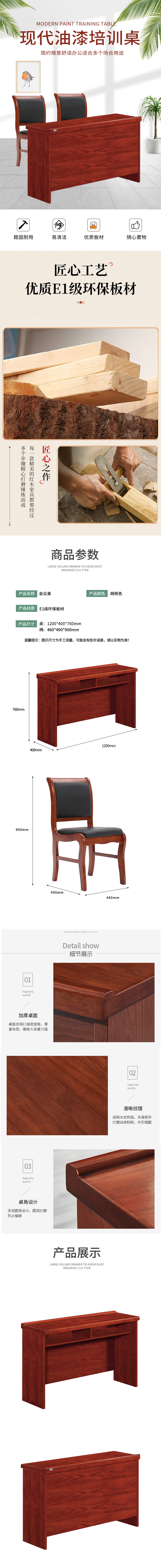 企诺 会议桌油漆类长条桌双人(1桌2椅) QZ234 1200*400*760mm 胡桃色(单位:套)