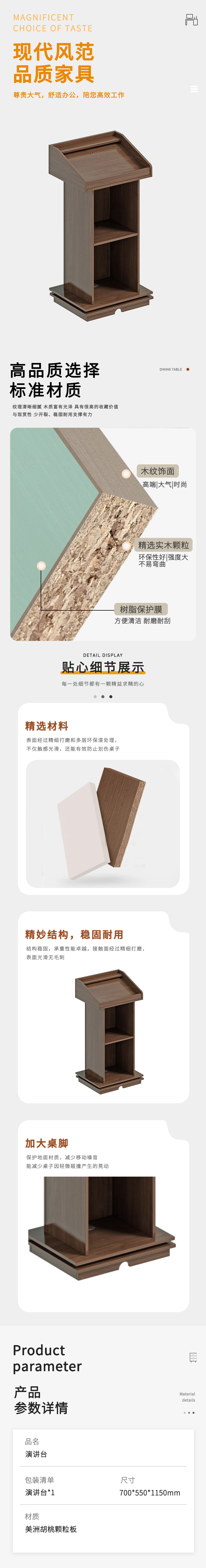 企诺 演讲台发言台现代简约教室会议室小讲台桌子主持发言台 QNS-LF-T0620 700*550*1150mm 胡桃色(单位:张)