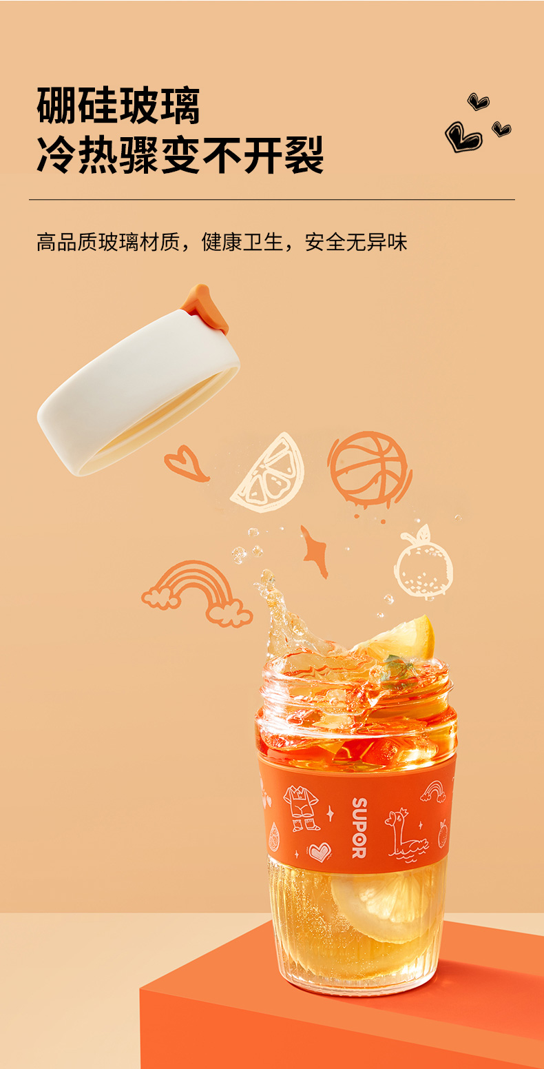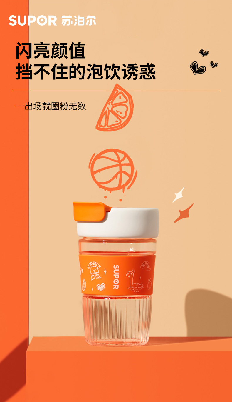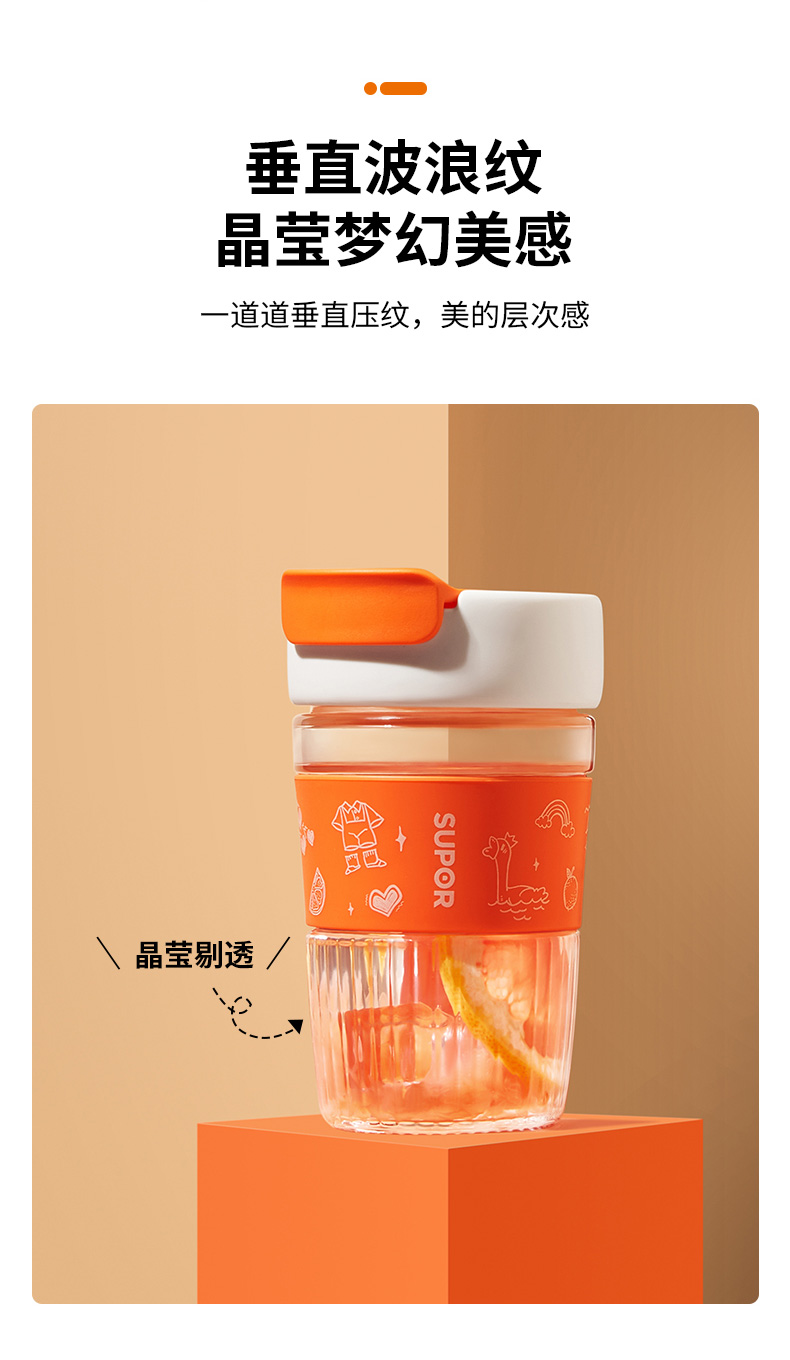 苏泊尔直饮玻璃泡饮杯.SUPER鹅鹅/KC36HT10(单位:个) 炫橙色