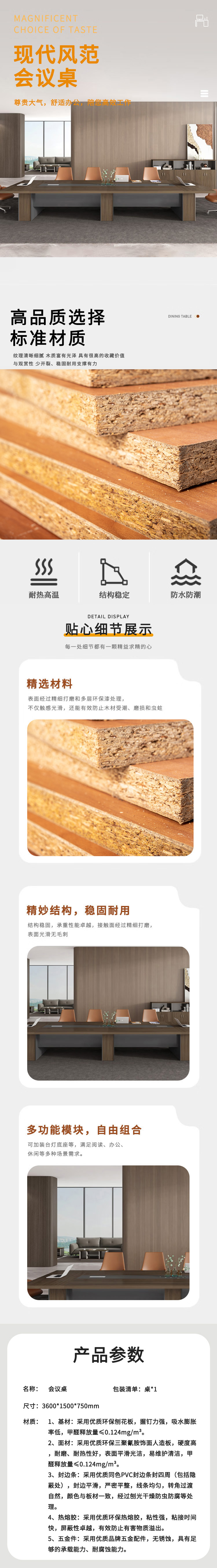 企诺 高档会议桌 QNC202YG-BM-H3601 3600*1500*750mm 胡桃色(单位:张)