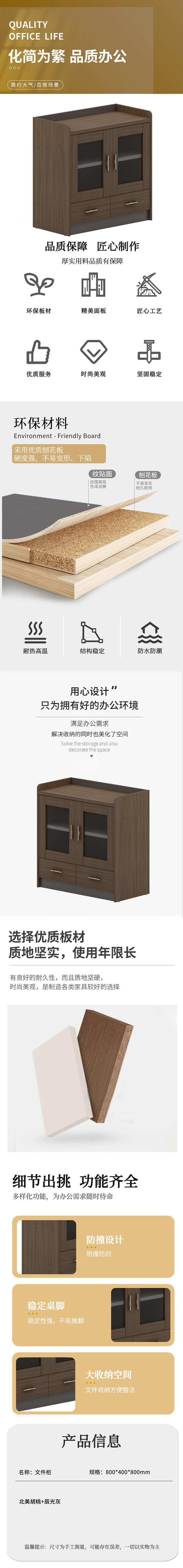企诺 办公文件资料柜 两抽文件柜 QNM202YG-BM-C0801 800*400*800mm 胡桃色(单位:个)