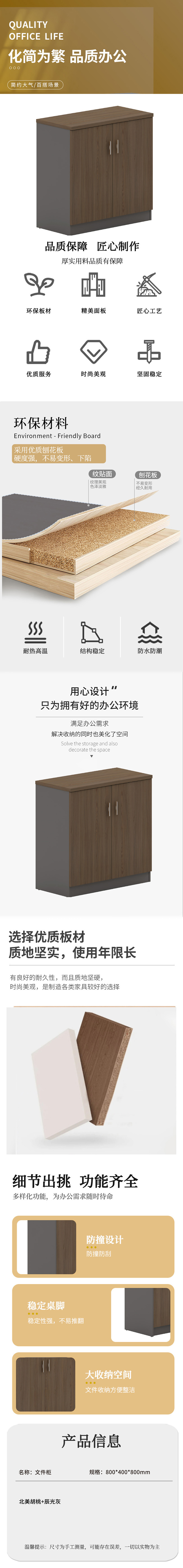 企诺 办公文件资料柜 两门文件柜 QNM202YG-BM-G0805 800*400*800mm 胡桃色(单位:个)