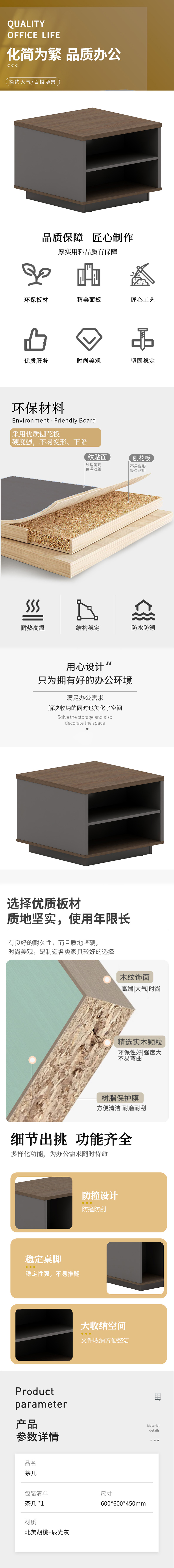 企诺 商务风办公家用 方茶几 QND2AYG-BM-J0601 600*600*450mm 胡桃色(单位:张)