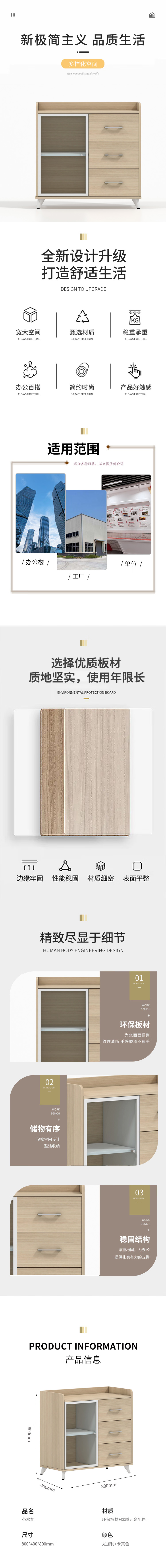 企诺 木质茶水柜餐边柜 QZ042 800*400*800mm 枫木色(单位:个)