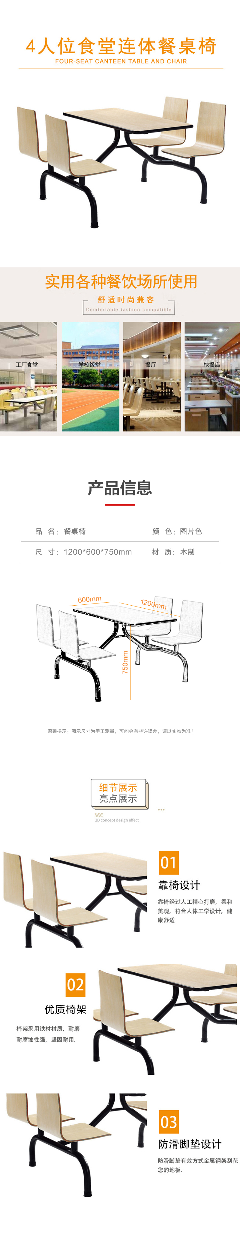 企诺 连体餐桌椅一桌四椅 QZ237 1200*600*750mm 枫木色(单位:张)