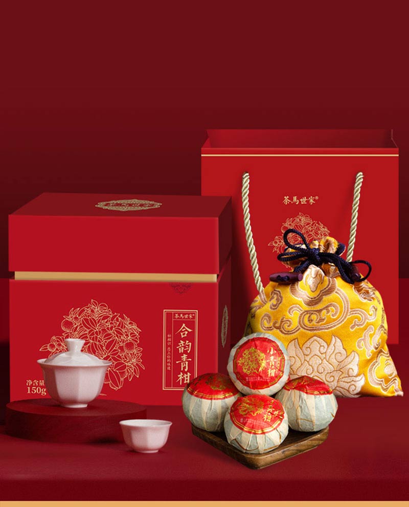 茶马世家合韵小青柑正宗新会普洱茶叶桔柑普茶熟茶叶礼盒装150g 红色