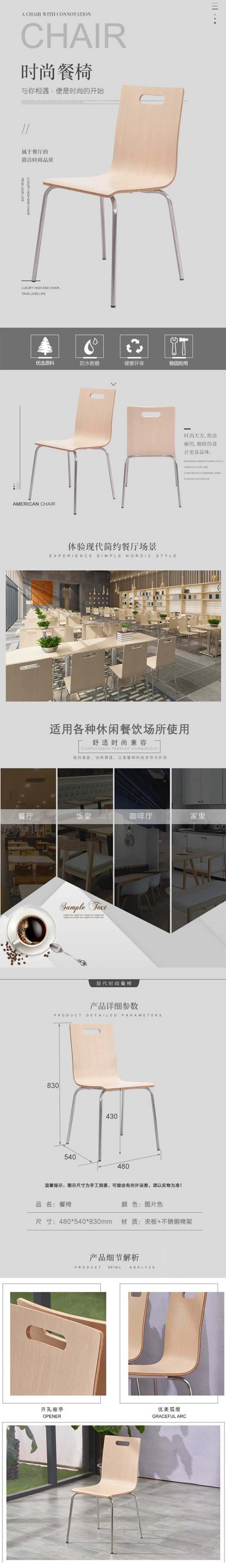 企诺 简约餐椅钢制脚 QS018 480*540*830mm 枫木色(单位:张)