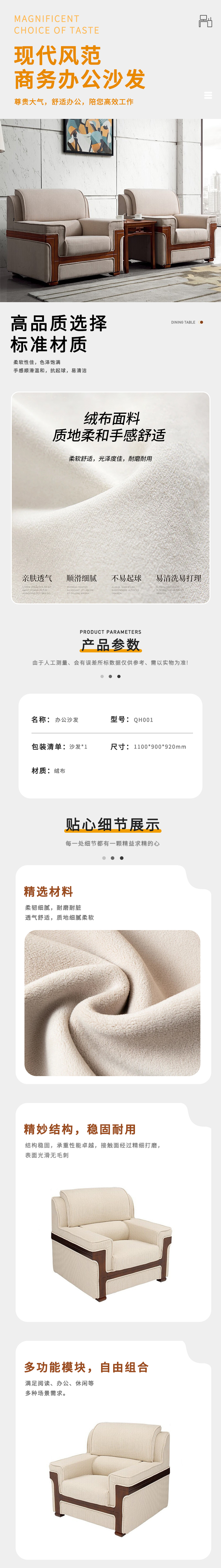 企诺 商务办公沙发单人位 QH001 1100*900*920mm 米色(单位:张)