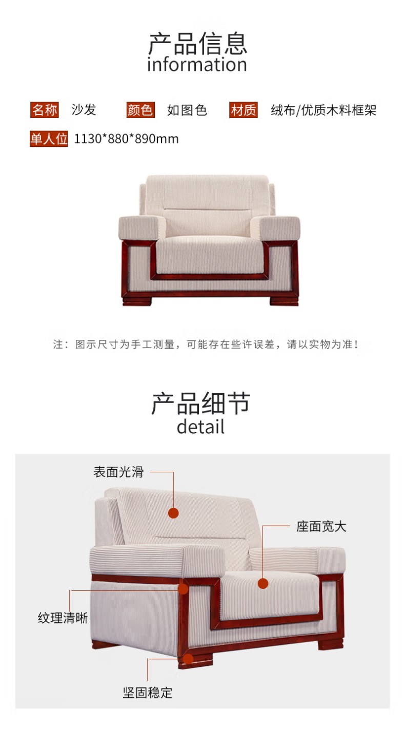 企诺 商务办公沙发单人位 QH002 1130*880*890mm 米白色(单位:张)