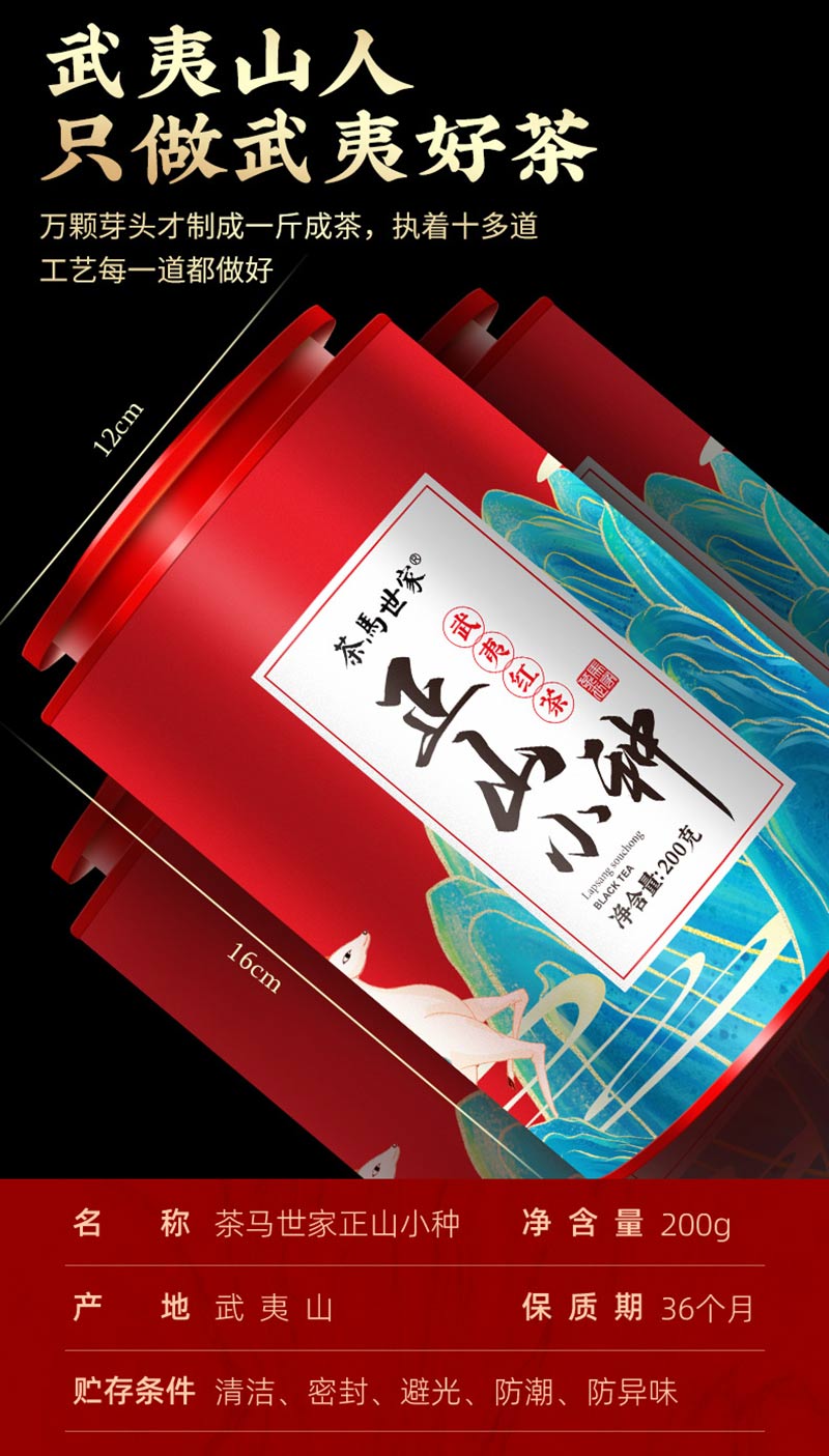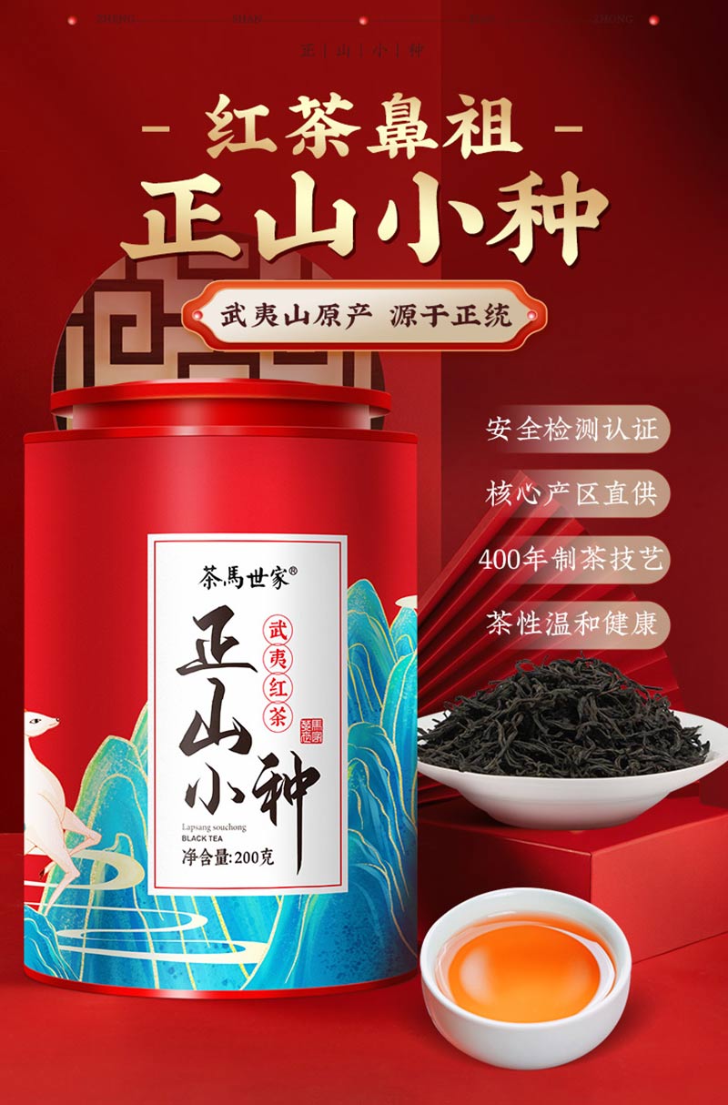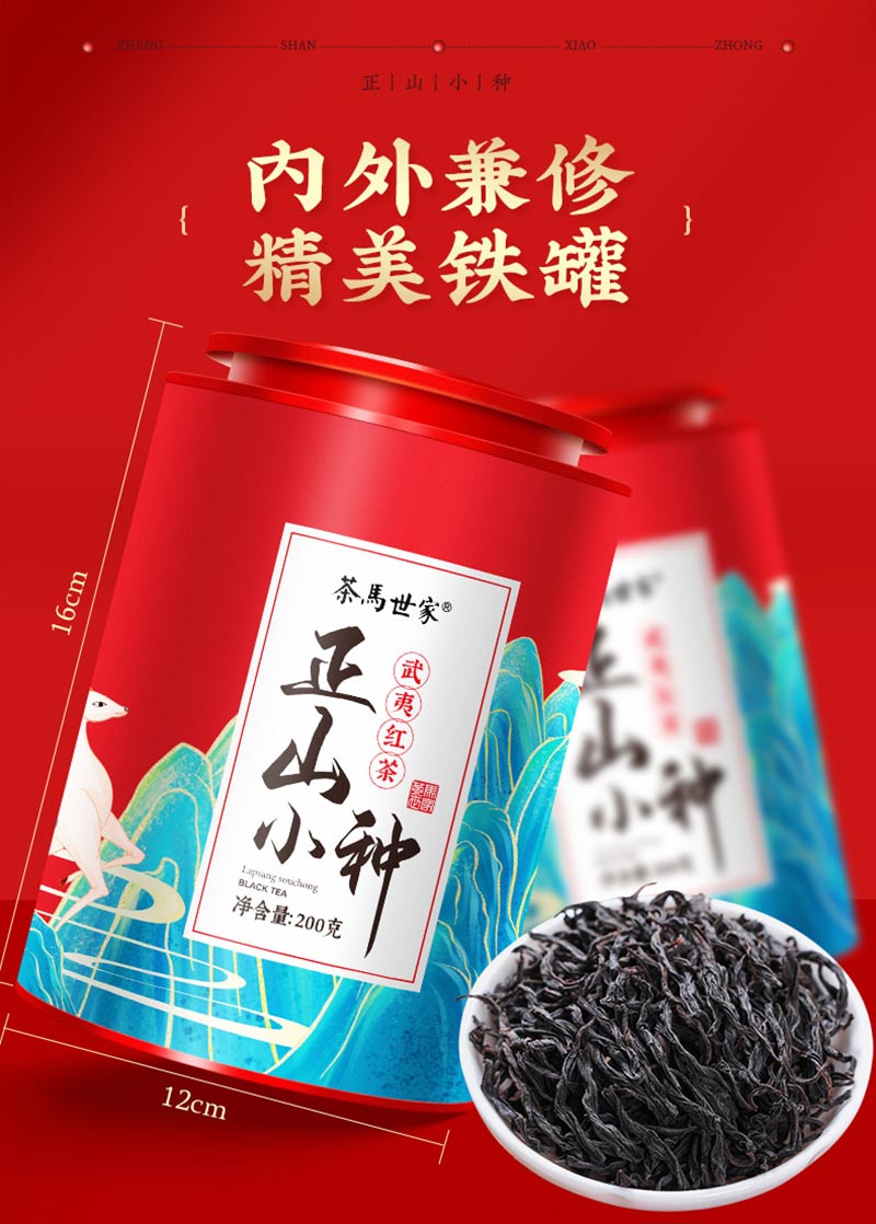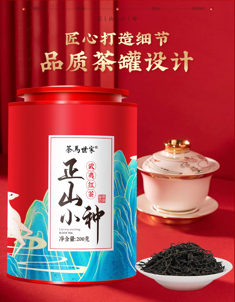 茶马世家正山小种正宗红茶武夷山桐木关浓香型茶叶散茶罐装200g 红色