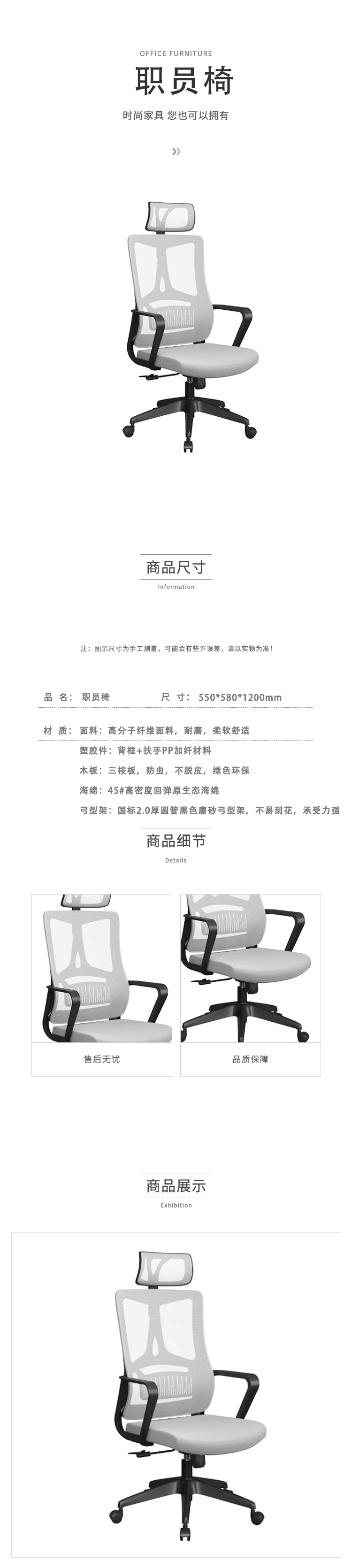 企诺 办公职员椅A款:带头枕 QN004 550*580*1200mm 白色(单位:张)