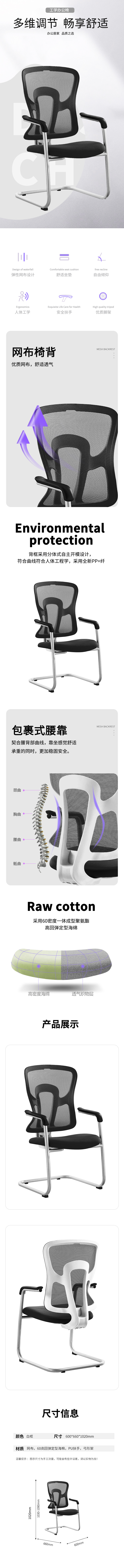 企诺 脑椅会议办公椅弓形椅人体工学椅子 白色弓形腿 QN025 600*660*1020mm 白色(单位:张)