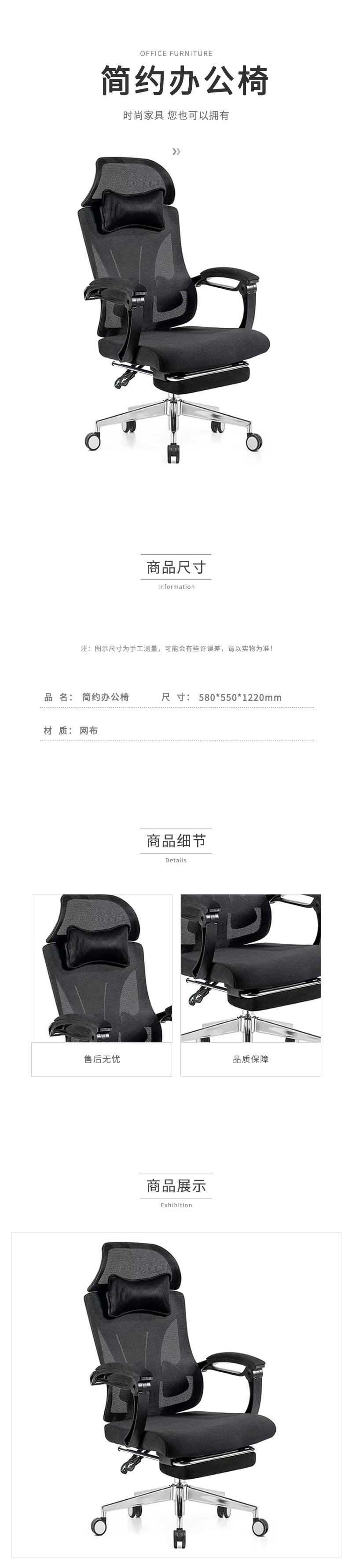 企诺 简约办公椅转椅带脚踏 QN029 580*550*1220mm 黑色(单位:张)