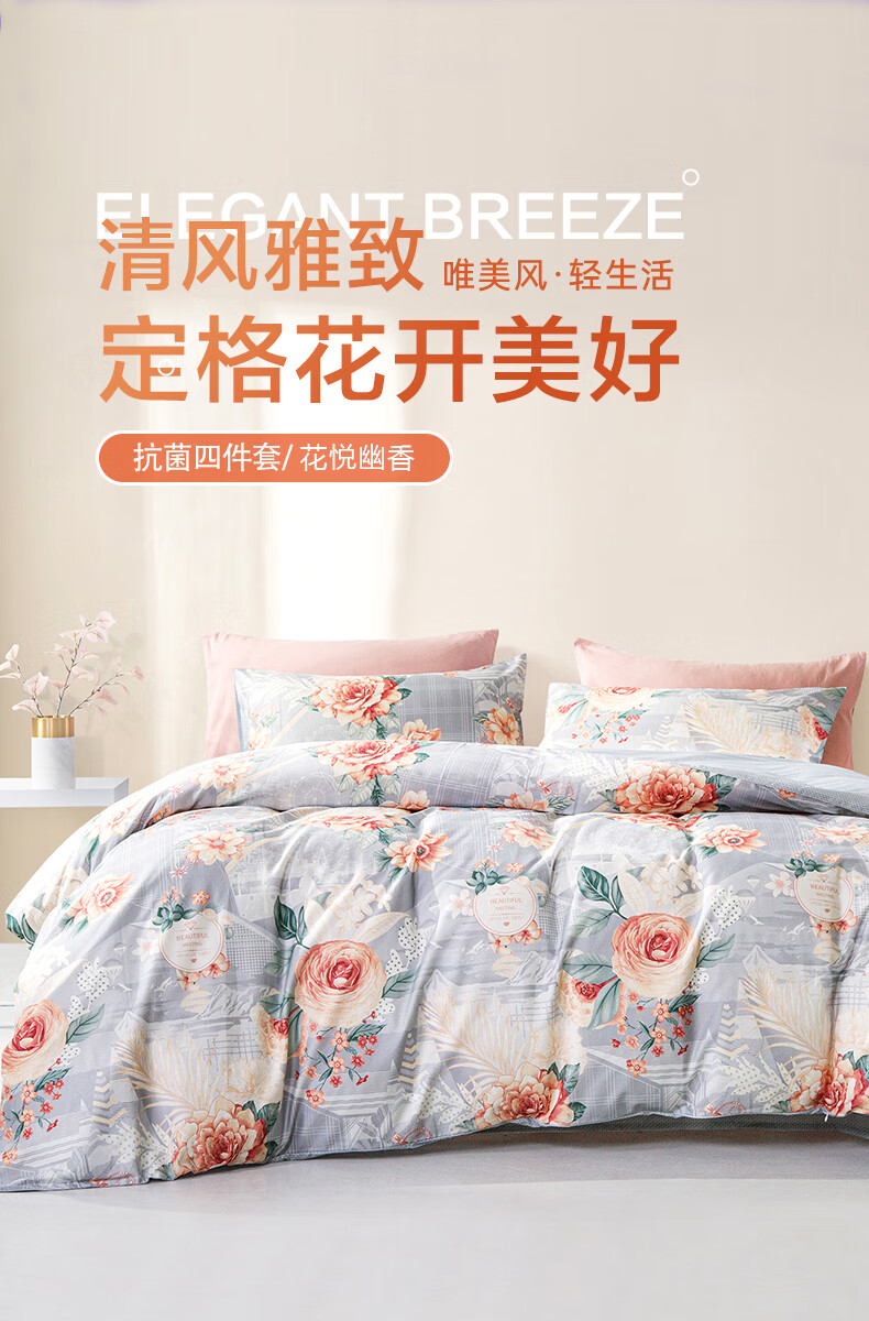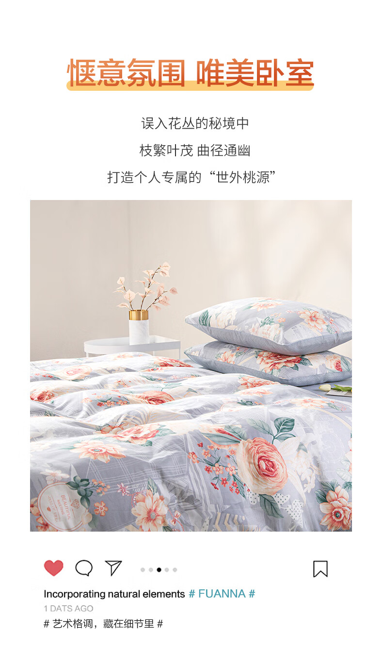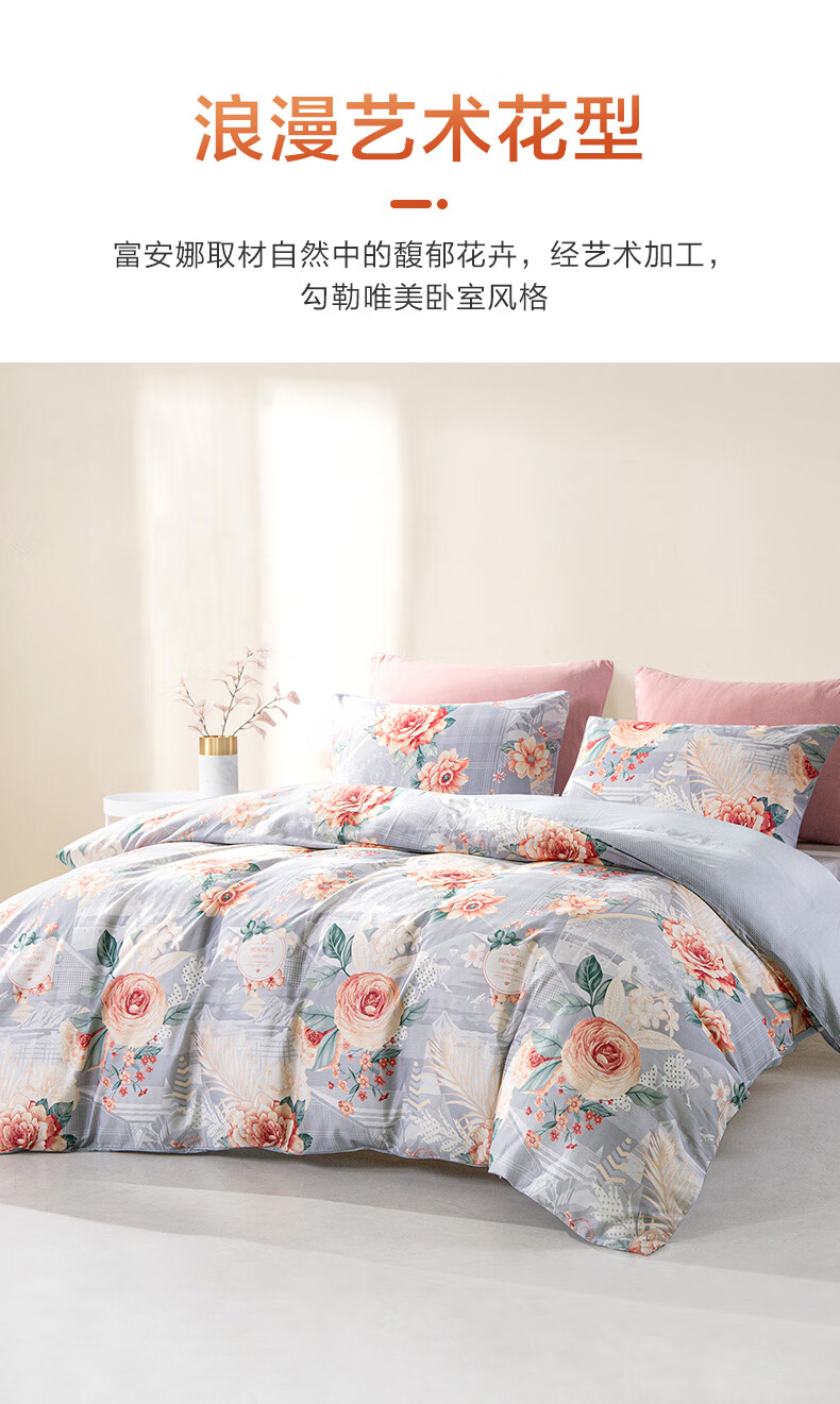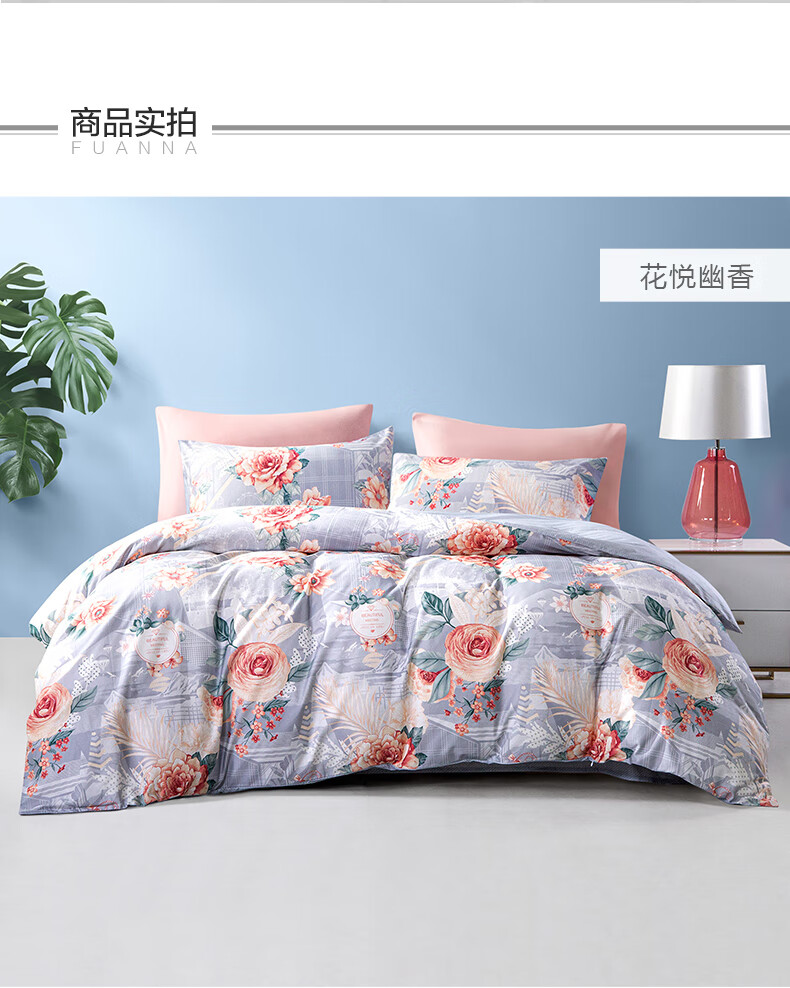 富安娜 磨毛四件套 花悦幽香 203*229cm 混色(单位:套)